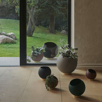 A very popular design has been renewed and revamped. The Globe is now available as a flower pot that goes well inside as outside. The new combination of shiny brass rings and colorful matte Globes are unique and playful. The colors are good on their own but they are even better together as the color tones match each other perfectly. The different sizes opt for many different plants that can either stand up from the pot or hang down for a more dramatic effect. The pots can be used both inside and outside.