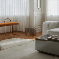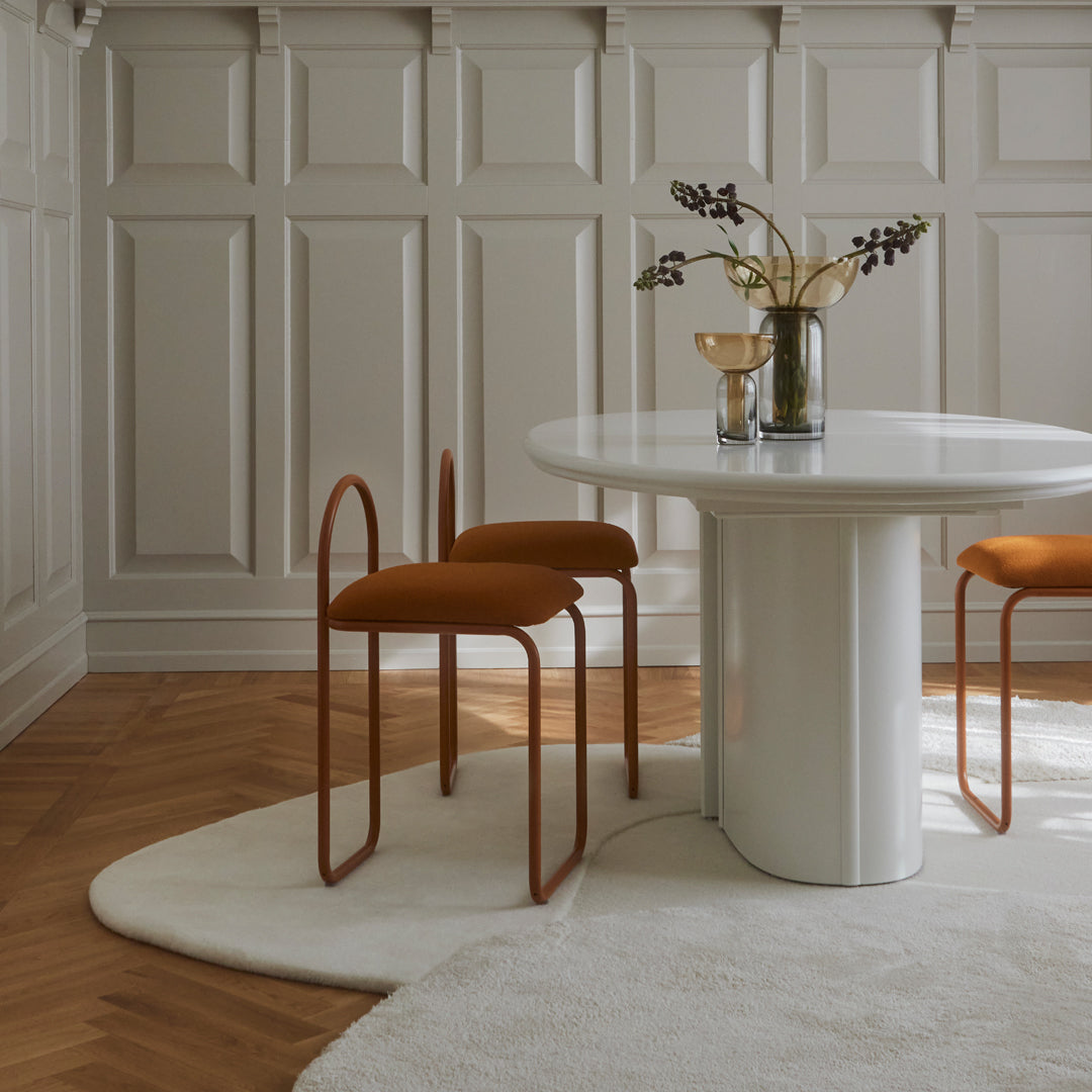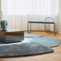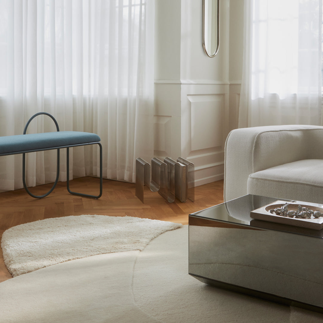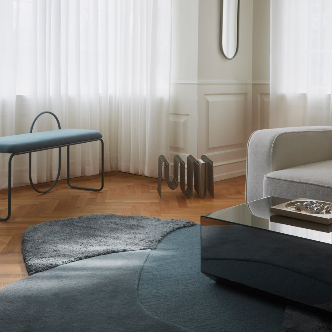 MOLA is the Latin word for stone and the rug appears as a visual presentation of just that. The “stones” of MOLA are designed in perfect harmony and symbolizes the milestones in our lives. The different levels, materials and structures of the rug are a manifestation of significant moments that we experience and from which we evolve. The meaning of stone is furthermore a reference to natural surroundings, where the materials found in each “stone” of MOLA rug, embodies the diversity of Mother Nature.
