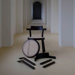 Pagoda is a collection of chairs inspired by the classic café chairs of 19th century Vienna. The chair is supremely light and compact with a structure that has been reduced to its very essence. The chair consists of only six pieces – delivering good craftsmanship and efficiency while allowing multiple material configurations. The chair’s circular seat stems from rationalization while symbolizing the “Way of Nature” or “oneness” in Chinese culture. Cantilevered arms and back subtly reference Pagoda gates, giving the chair its personality while also eliminating the need for an arm and armless version.