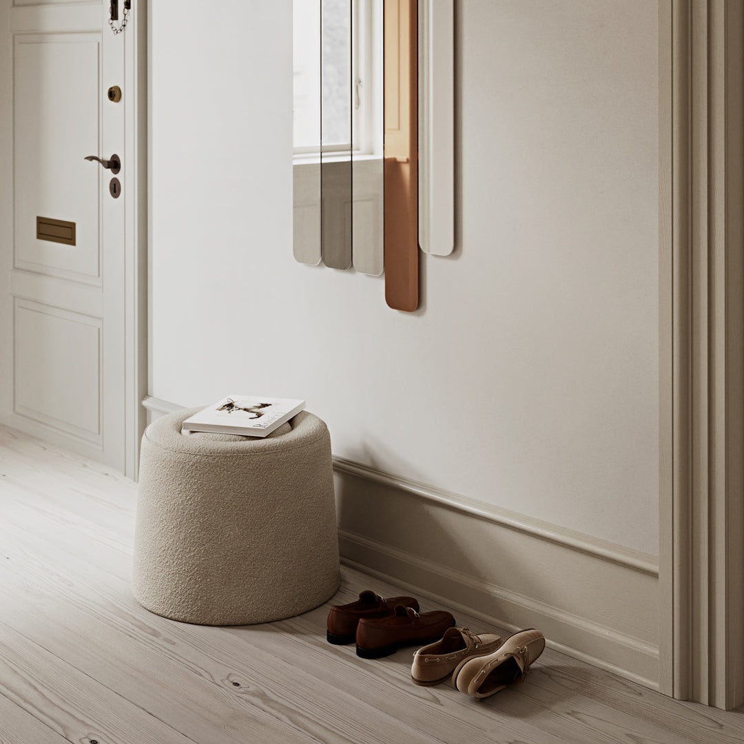 Place it in front of your sofa for your feet to rest, in the hallway for easy shoe changing, aligned with the bed, or use it as an adaptable seating solution for guests when in need of an extra seat. All elements share the same height, allowing effortless coordination, both in terms of shape and color.