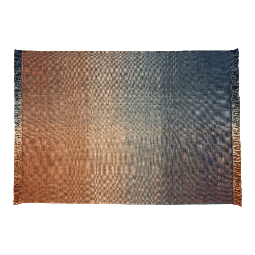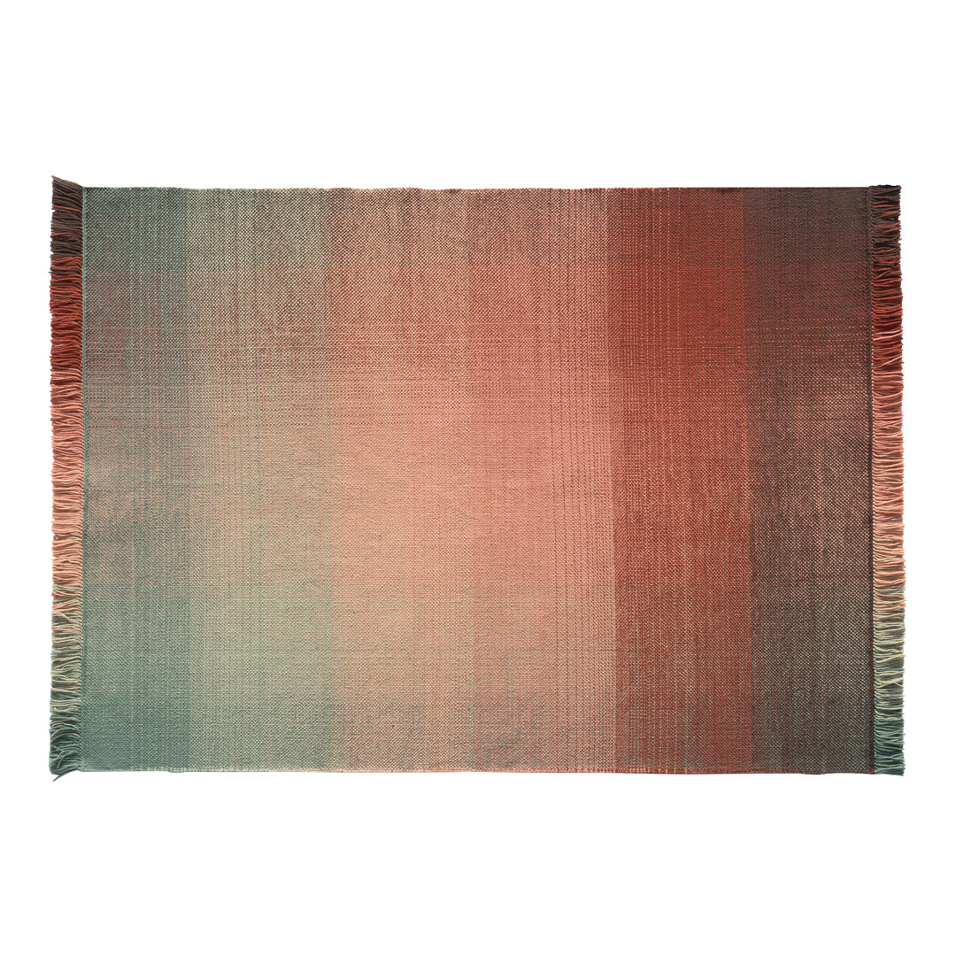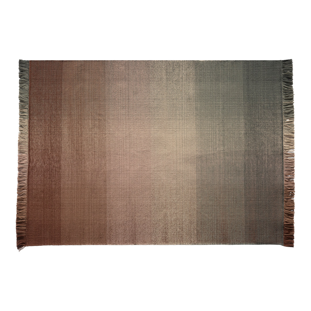 The Shade collection is inspired by magical moments in nature where colors melt and speak for themselves. Designer Begum Cana Ozgür emphasizes: "this is a handmade flat-weave rug that generates an incredible and well-rounded diffusion of color. The surface releases a sense of tranquillity and well-being that is balanced by the penetrating vibration of colors."