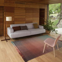 The Shade collection is inspired by magical moments in nature where colors melt and speak for themselves. Designer Begum Cana ozgur emphasizes: “This is a handmade flat-weave rug that generates an incredible and well-rounded diffusion of color. The surface releases a sense of tranquillity and well-being that is balanced by the penetrating vibration of colors.