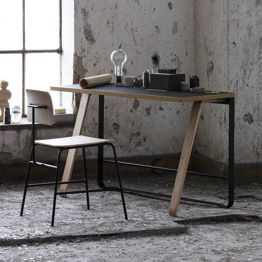 Hemingway is the story about a desk. A story about an encounter between the organic oak and the industrial, black steel. An inspiring workplace where stories come to life.
