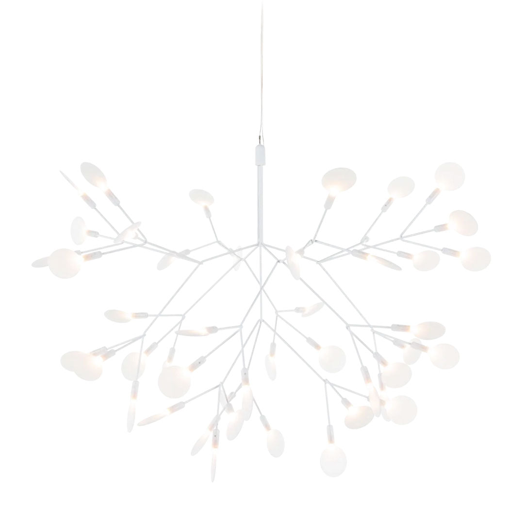 Nature meets technology in Heracleum III Suspended by Bertjan Pot. This airy LED lamp is inspired by the flowering plant of the same name that can grow as high as 5 metres. The white leaves in Heracleum III Suspended ramify from one branch, creating a very technical, natural structure thanks to a technique of coating conductive layers called Electrosandwich by Marcel Wanders studio. Heracleum III Suspended comes in two sizes and four different colours. Compatible with our Wireless Wall Switch, for quick and easy dimming that gives you full control over the light output.
