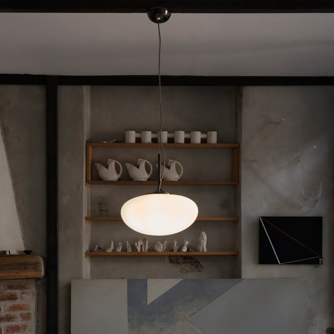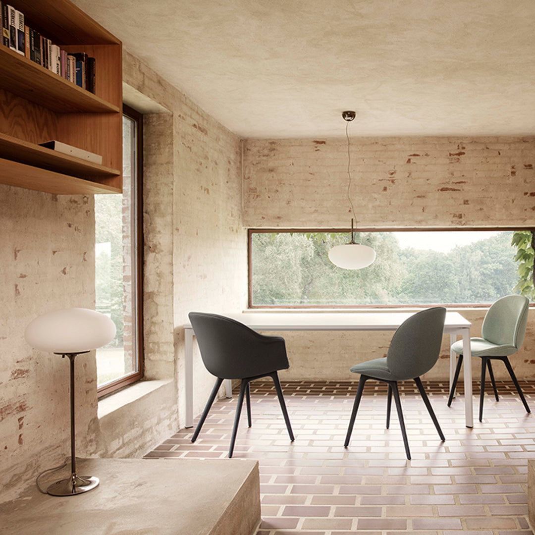 The Stemlite (1962) was the first ‘total look’ lamp, a pioneering new typology conceived by American Designer Bill Curry, which replaced the traditional base-plus-shade form with a single self-contained unit comprising interchangeable modules. His debut design, themuch-emulated Stemlite, was named “most influential lamp of the yearâ€� by Industrial Design Magazine in 1965, used on the set of the original Star Trek TV series, and remained in production until 1977. Now remastered by GUBI after almost half a century, the new collection comprises two table lamps, two floor lamps and a new pendant – a simple inversion of the original design – in a contemporary yet authentic color palette. Today’s Stemlite remains true to Curry’s designs, comprising three of the original heights: two table heights, one of which was originally conceived as a floor lamp and the original floor lamp height. A second, taller floor lamp has been added and a pendant light has been engineered by simply flipping the original design upside-down. A counterweight has been hidden in the negative space created by the geometry of the foot of the upright lamps to meet contemporary safety requirements regarding stability and versions of the floor and pendant lights with new larger globes are also available.