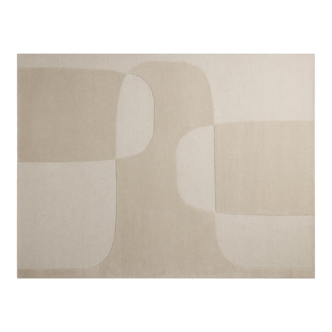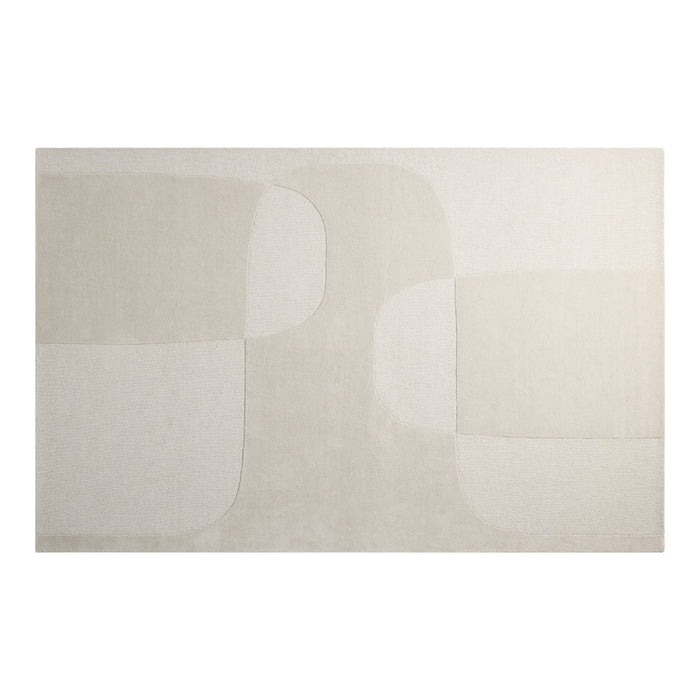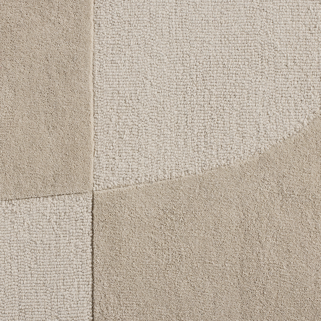 Hand-tufted from premium wool fibers, the rug creates a luxurious tactile experience underfoot while offering natural resilience and longevity. The artisanal tufting technique enables the rug's distinctive textural complexity, combining 0.5-inch cut pile with 0.3-inch loop pile to create dimensional depth and surface variation that responds beautifully to changing light throughout the day.