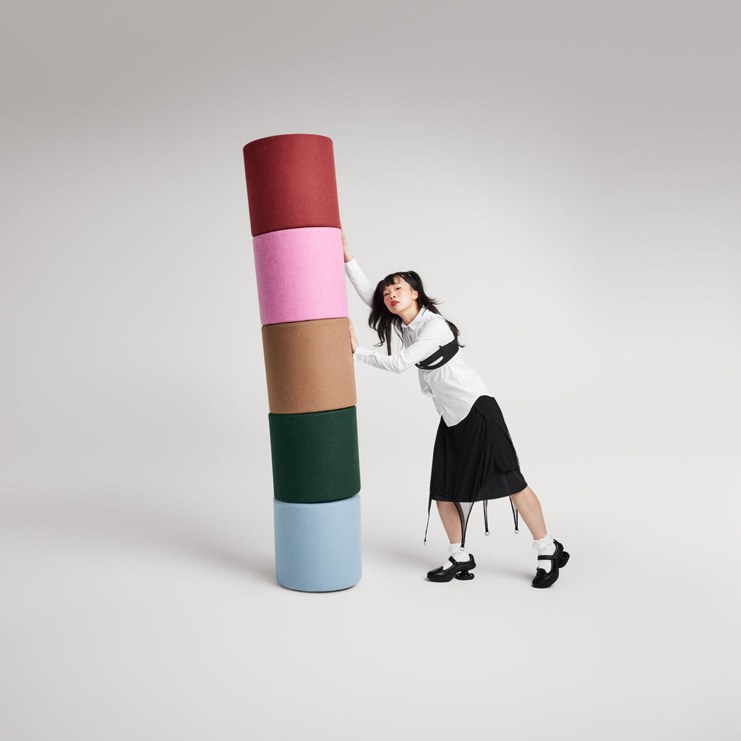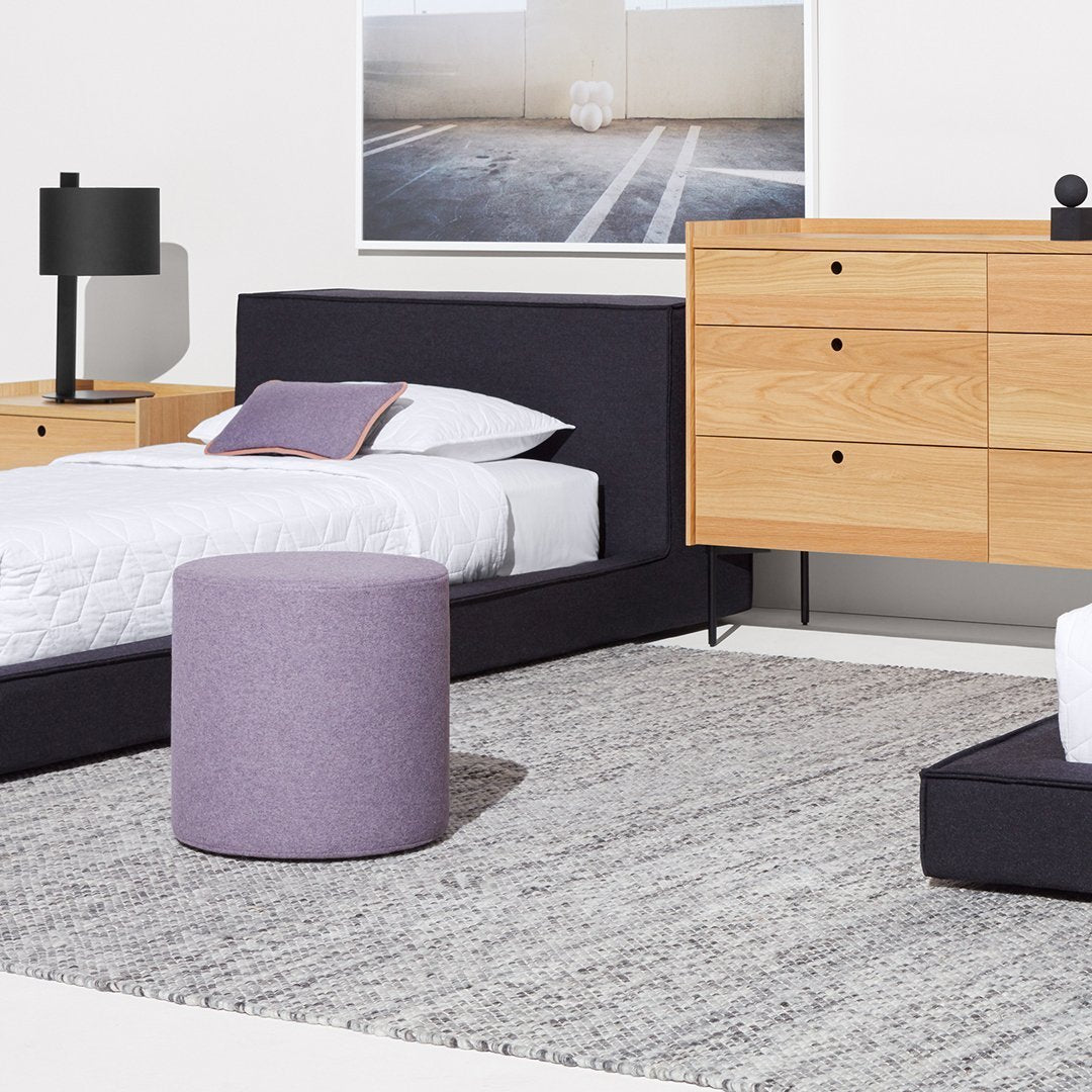 Playful geometry gets to work. Use as side table, foot stool, flexible seating, or an impromptu stage. Soft felted wool blend upholstery is available in boatloads of colors.