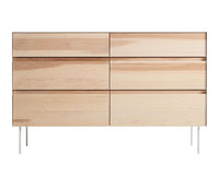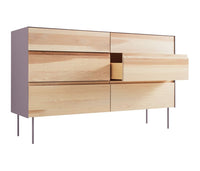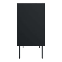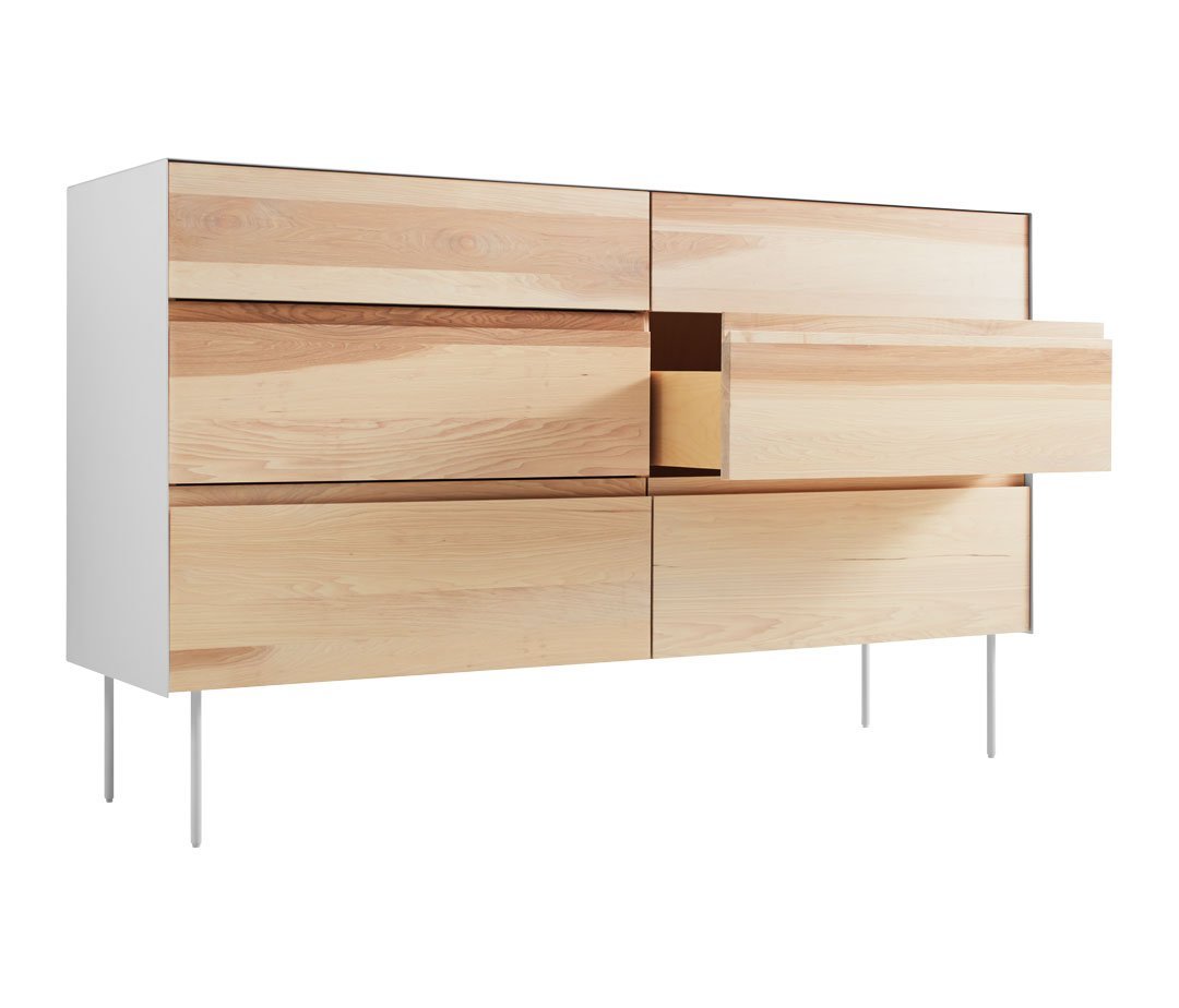 Sometimes we fall hard for a good mix of materials. Like beautiful, warm wood meeting the cool, smooth toughness of steel. This design marries wood drawers and doors with a powder-coated steel side, top and legs to form an alluring union. Integrated groove pulls and soft closure mechanisms on all doors and drawers.