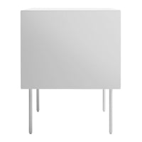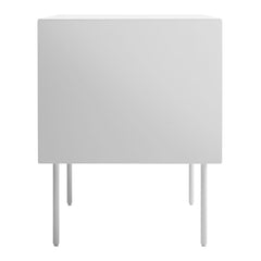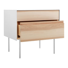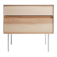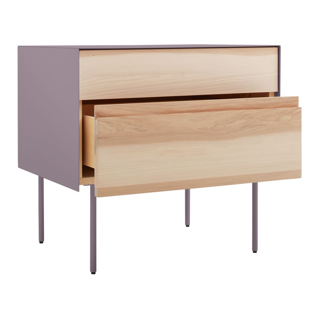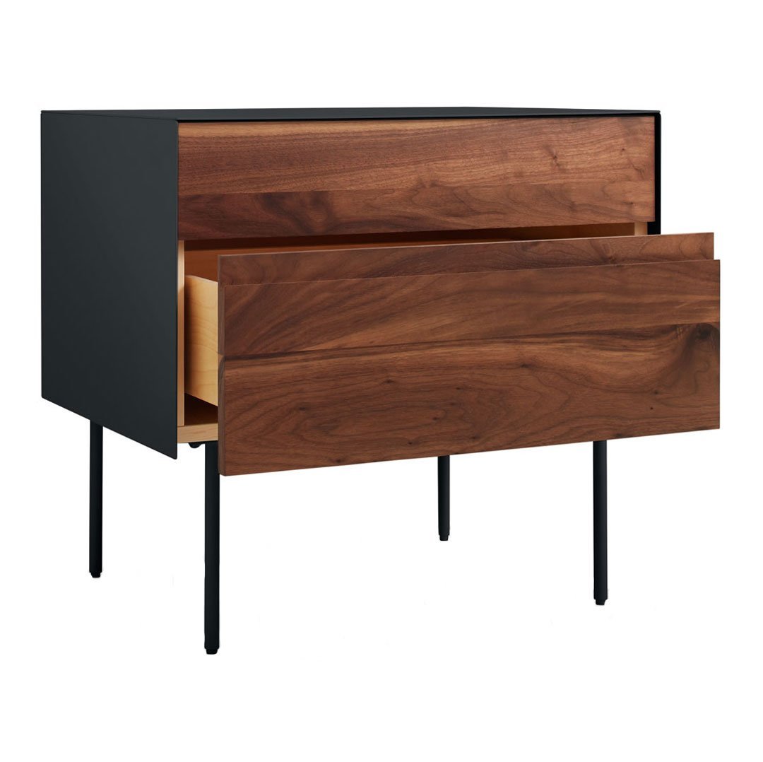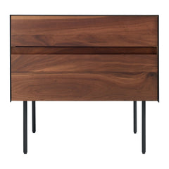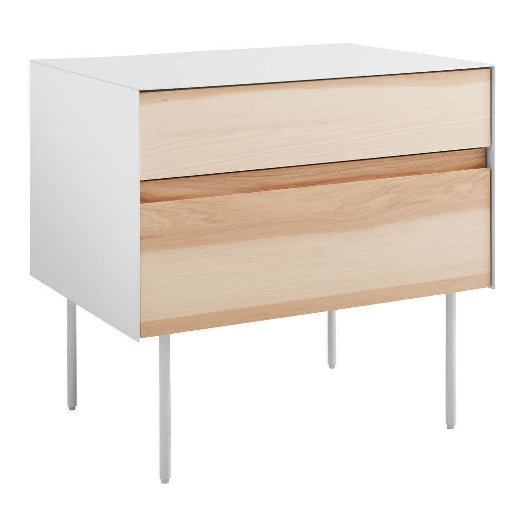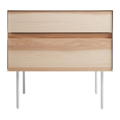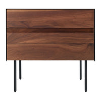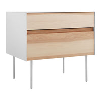Solid wood drawer fronts. Powder-coated steel outer case with plywood interior. Powder-coated steel legs with nylon foot glides.