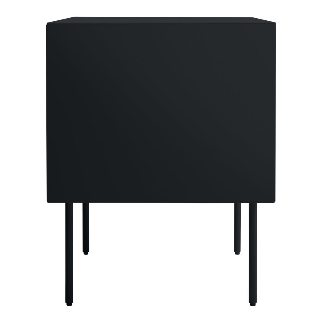 Sometimes we fall hard for a good mix of materials. Like beautiful, warm wood meeting the cool, smooth toughness of steel. This design marries wood drawers and doors with a powder-coated steel side, top and legs to form an alluring union. Integrated groove pulls and soft closure mechanisms on all doors and drawers.