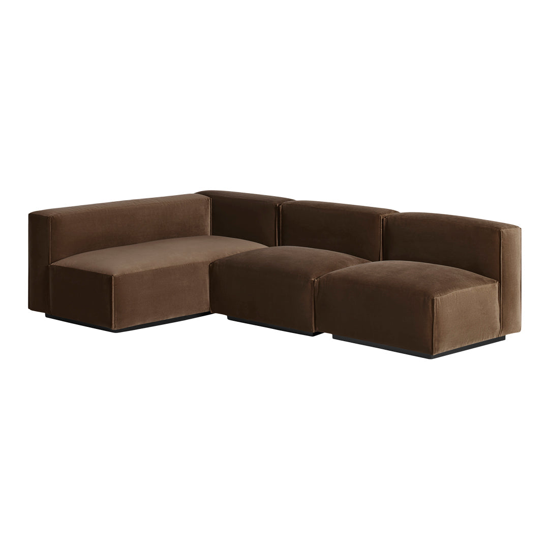 Cleon's three modular pieces are designed to let you configure and reconfigure your own perfect seating solution. Stick with your favorite or switch it up. These upholstered components can be connected to create multiple size and shape possibilities. Down-filled cushions, contrast stitching and gentle pleating at the seams round out the package.