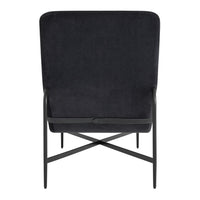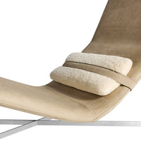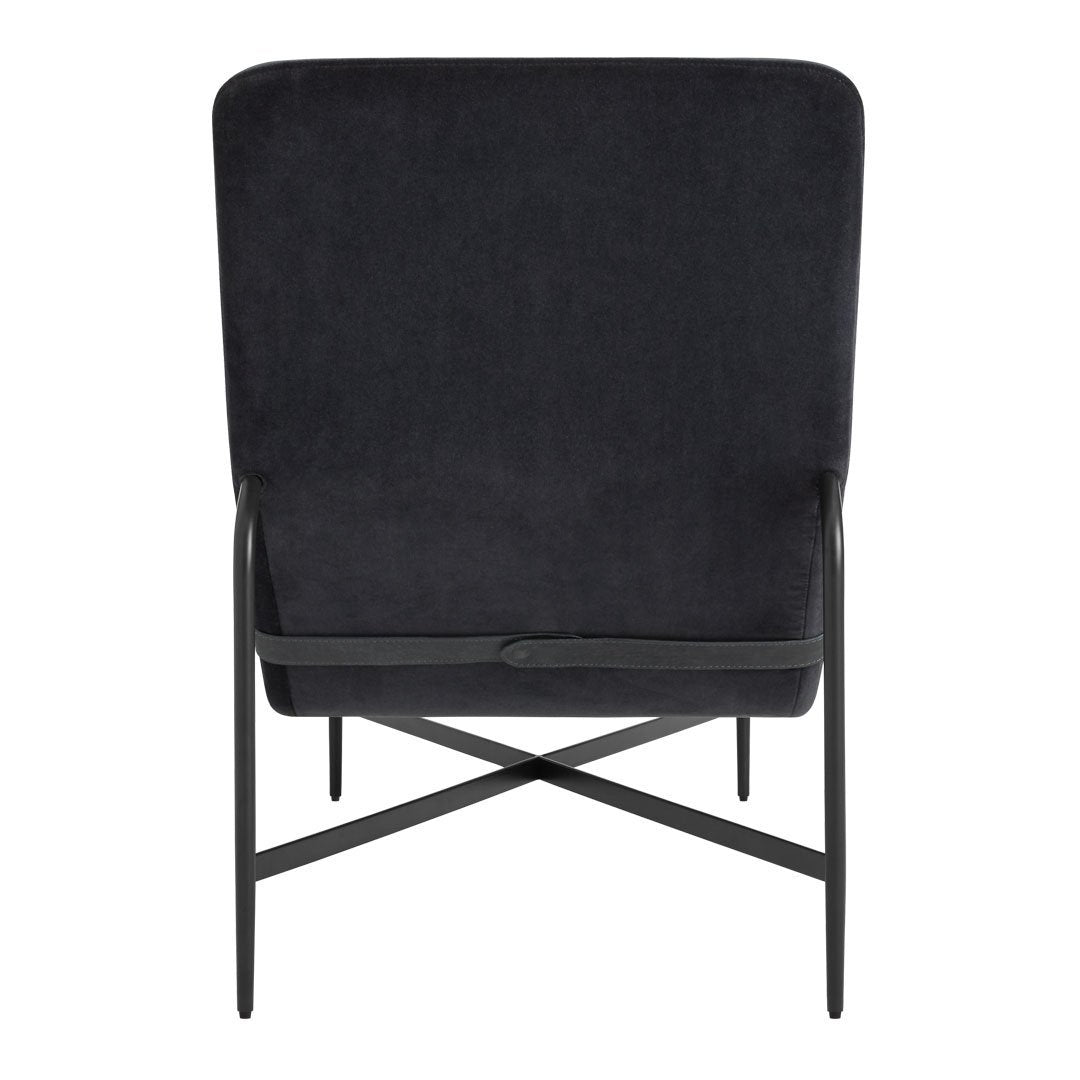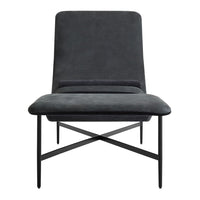 Leather wrapped contours form a relaxing position that equally invites introspection and socialization. The contrasting lumbar pillow slides to be where you want it and blackened steel base provides all the support needed to start your journey of taking a damn load off.