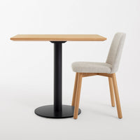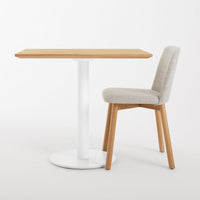 Frozen pizza or five-star feast, this biscuit of a table serves it up in style. A simple steel pedestal props up your choice of warm wood or a solid laminate top for a universally flattering table fit for any space and occasion.