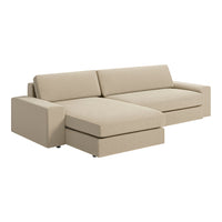 What immediately distinguishes this configuration is its thoughtful asymmetry. The attached chaise extends the traditional sofa form to create a dedicated lounging space that "treats your legs like royalty," as Blu Dot playfully notes. This extended platform invites complete relaxation perfect for afternoon naps, movie marathons, or simply stretching out with a good book. Cleverly designed connector brackets ensure structural integrity between components while maintaining a seamless visual flow.