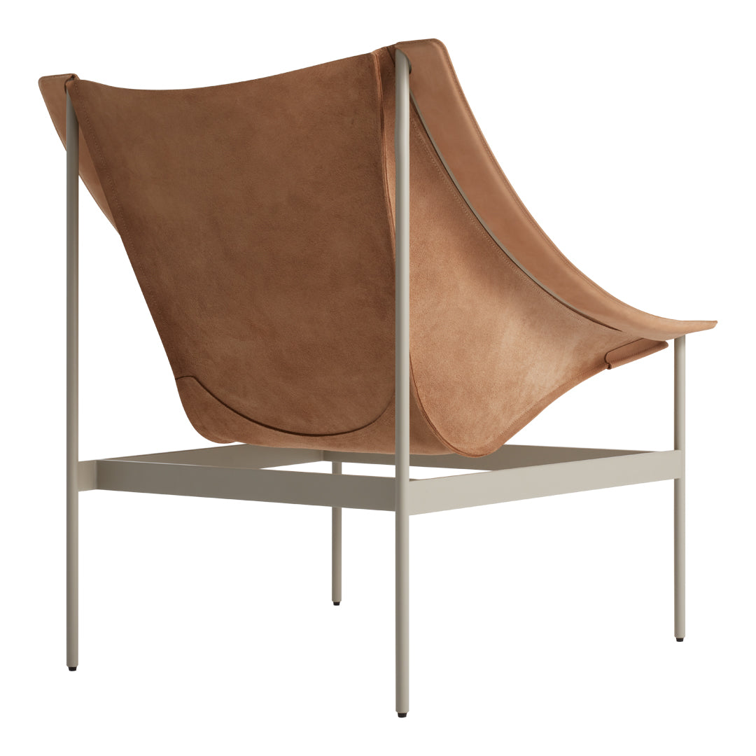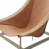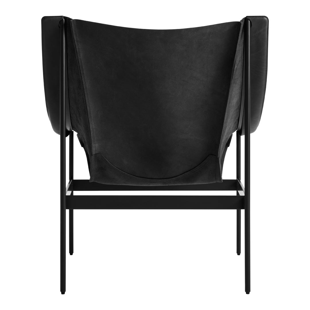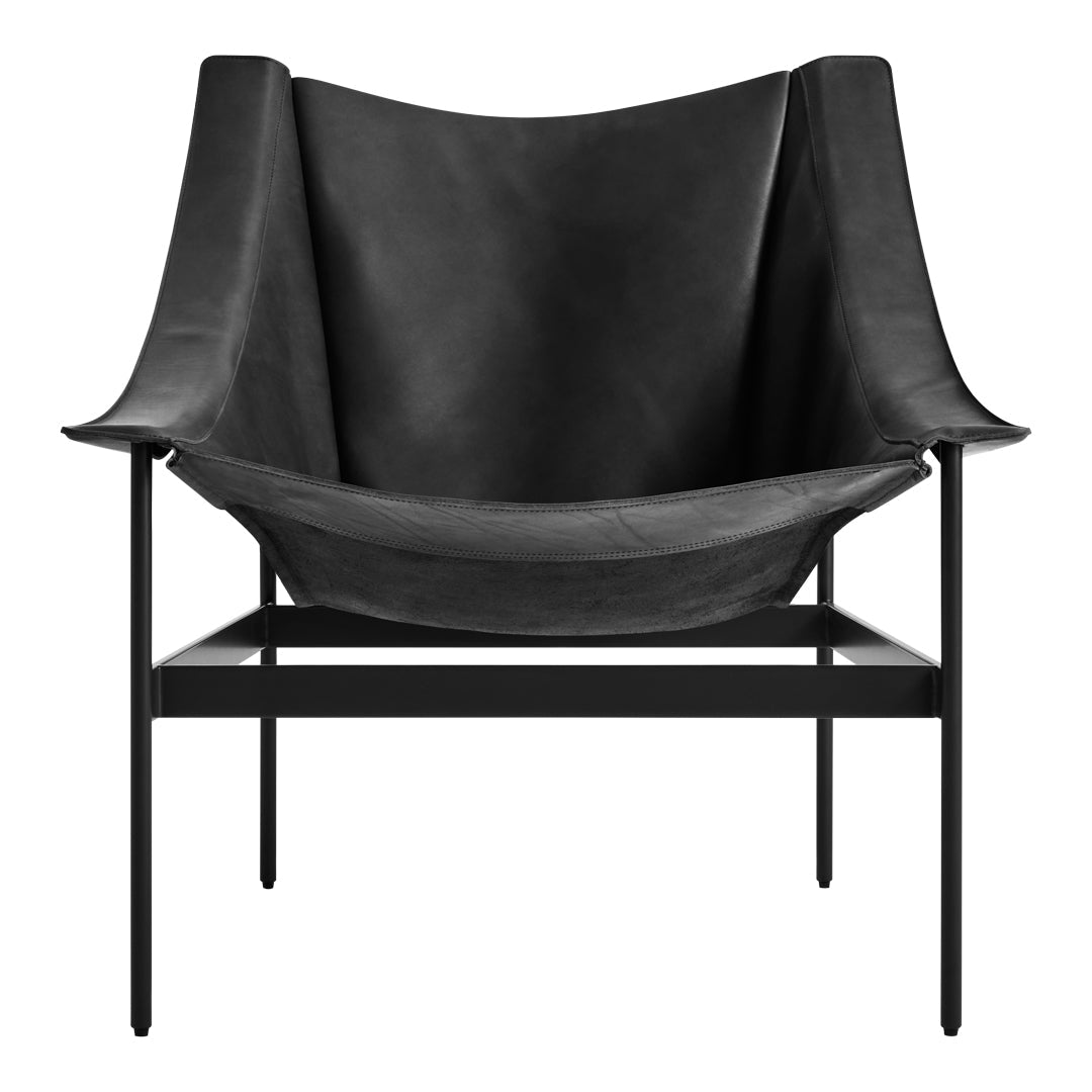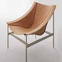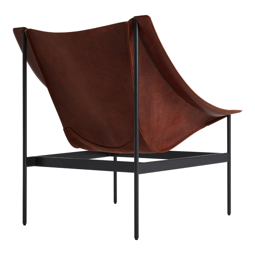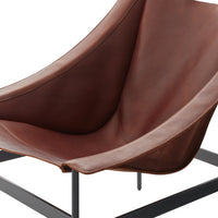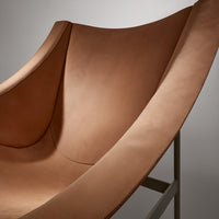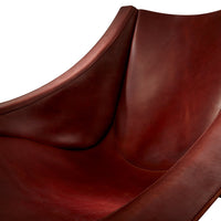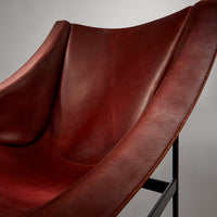 The chair's dramatic silhouette creates immediate visual tension between the geometric precision of its powder-coated steel rod and bar stock frame and the organic draping of its full-grain leather sling. This material contrast establishes both visual intrigue and physical comfort as the supple leather cradles the body in a naturally ergonomic position that encourages extended relaxation. The suspended design eliminates pressure points found in conventional upholstered seating, creating a floating sensation that transforms routine sitting into a distinctive experience.