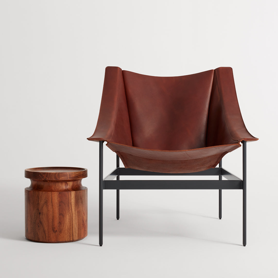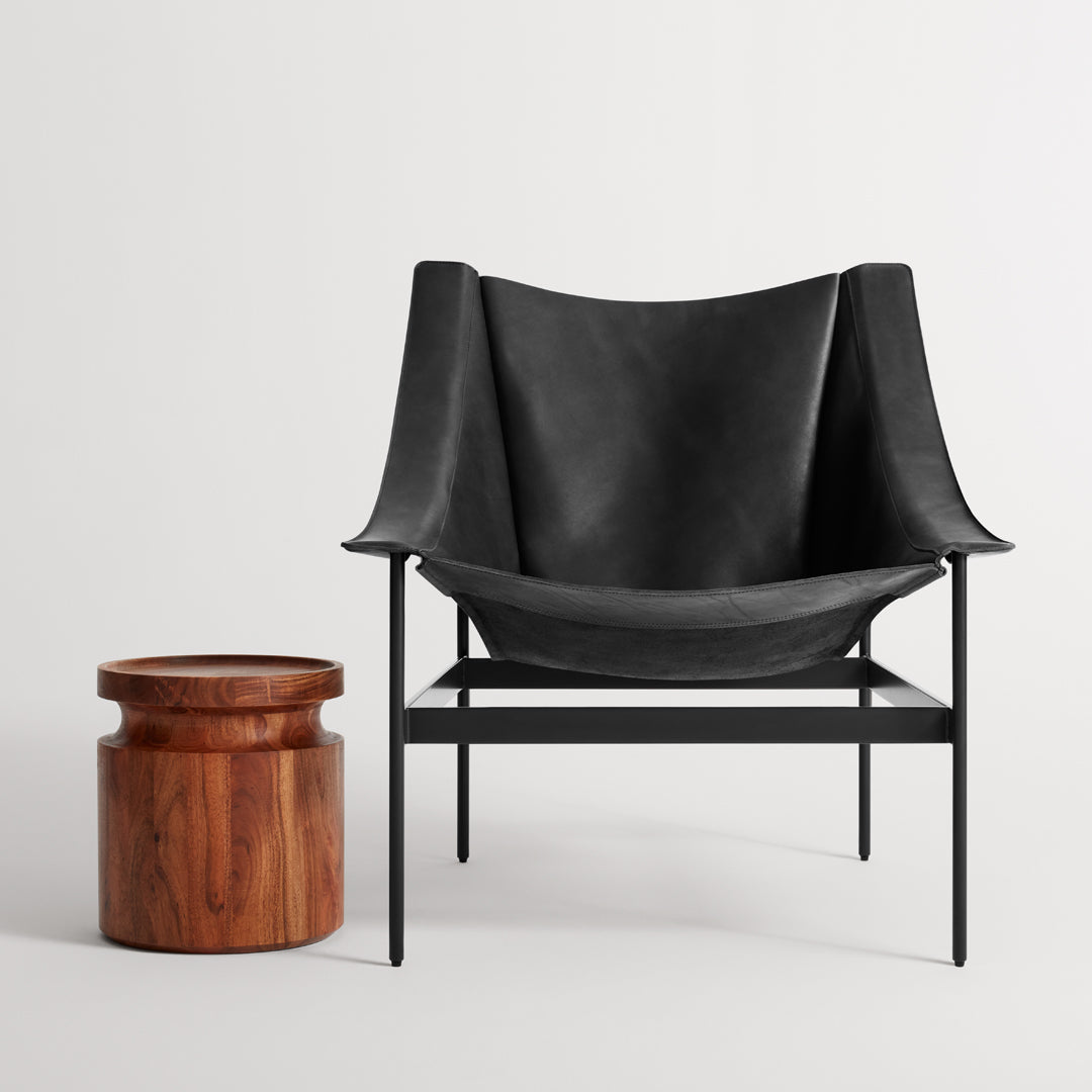Premium full-grain aniline leather in Black, Chestnut, or Sand provides both visual sophistication and tactile pleasure, while showcasing the natural markings and characteristics that make each chair uniquely authentic. This carefully selected leather is specifically chosen for its ability to develop a rich patina over time—gradually revealing a visual history of use that enhances rather than diminishes the chair's beauty. The minimalist frame provides both structural support and sculptural presence, creating a harmonious balance between industrial precision and organic warmth.