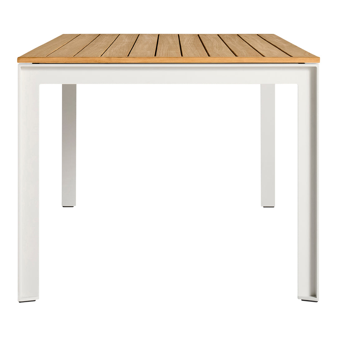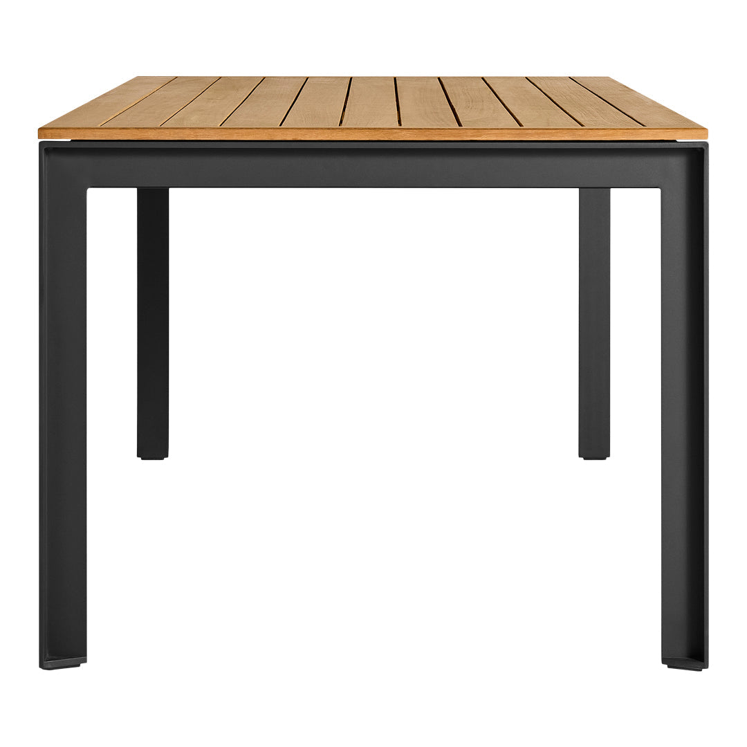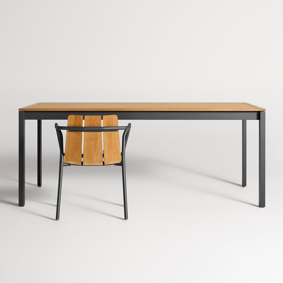 FSC ®-certified teak teams up with powder-coated aluminum to bolster your backyard activities. With smartly spaced teak slats that allow water to drain and wood to expand or contract, Hold Tight was designed for hot days and rainy nights. Sculptural, industrial-inspired details elevate the rugged base. Proportioned to party.