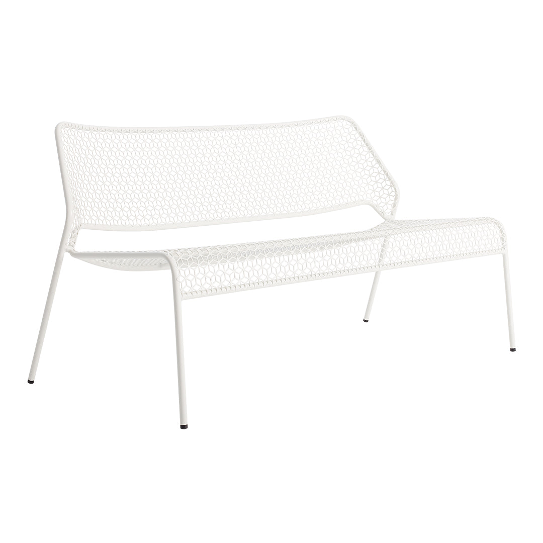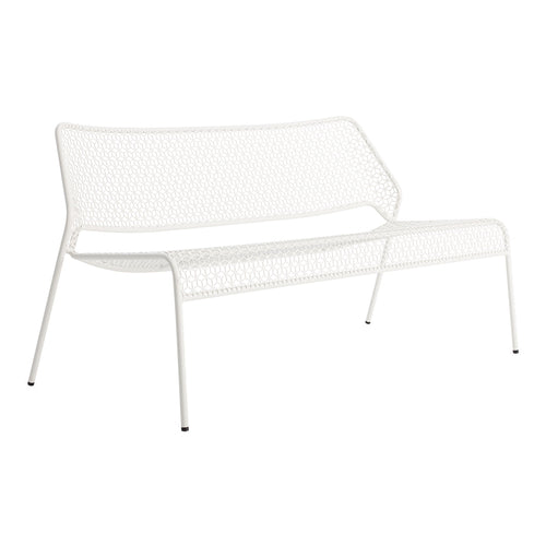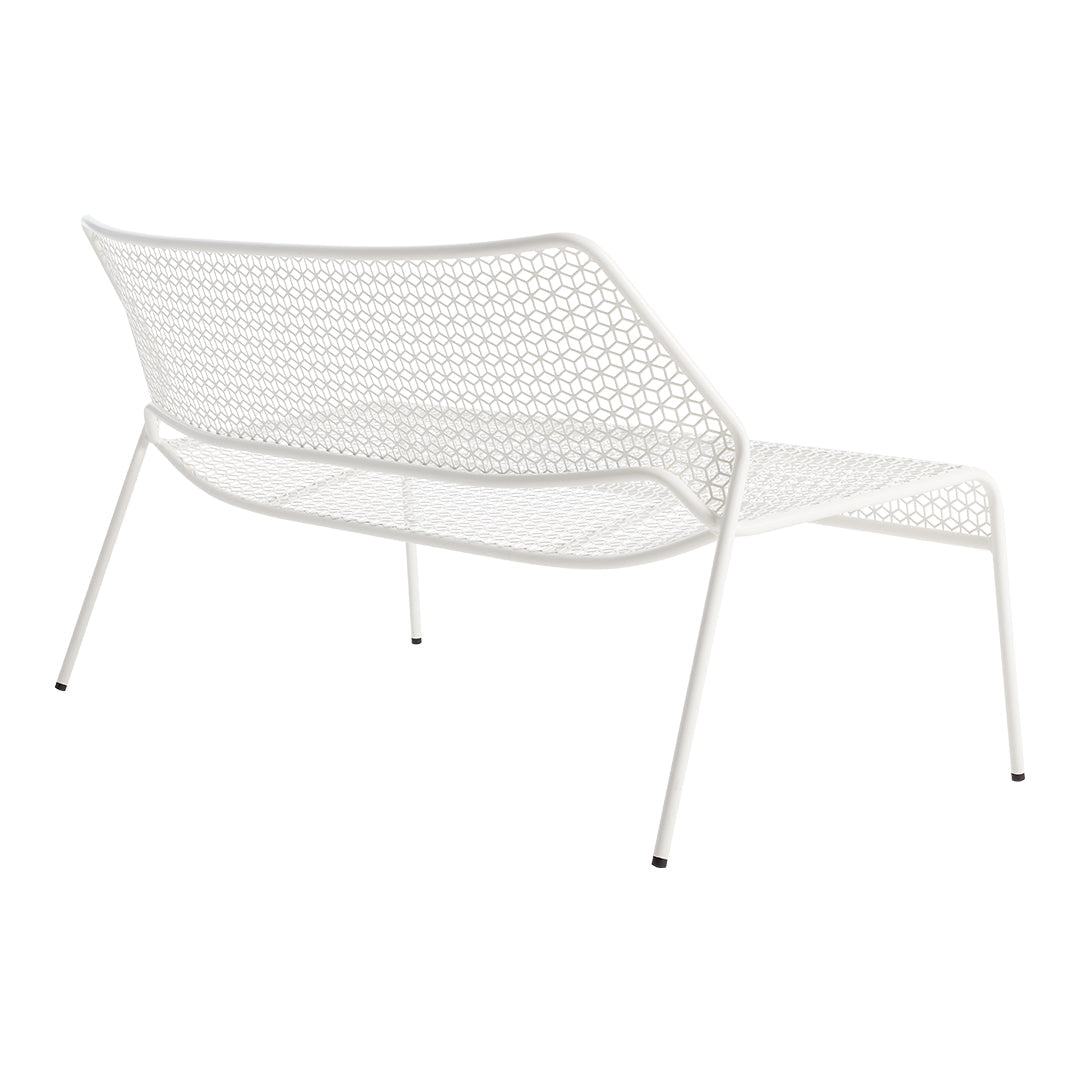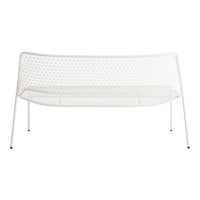 Graphic presence and social versatility converge in the Hot Mesh Settee by Blu Dot, offering a two-person seating solution that makes a contemporary statement in patios, lobbies, or living spaces. This distinctive settee reimagines outdoor furniture through a design-forward lens—delivering visual excitement through its perforated metal pattern while maintaining the practical durability required for all-weather performance.