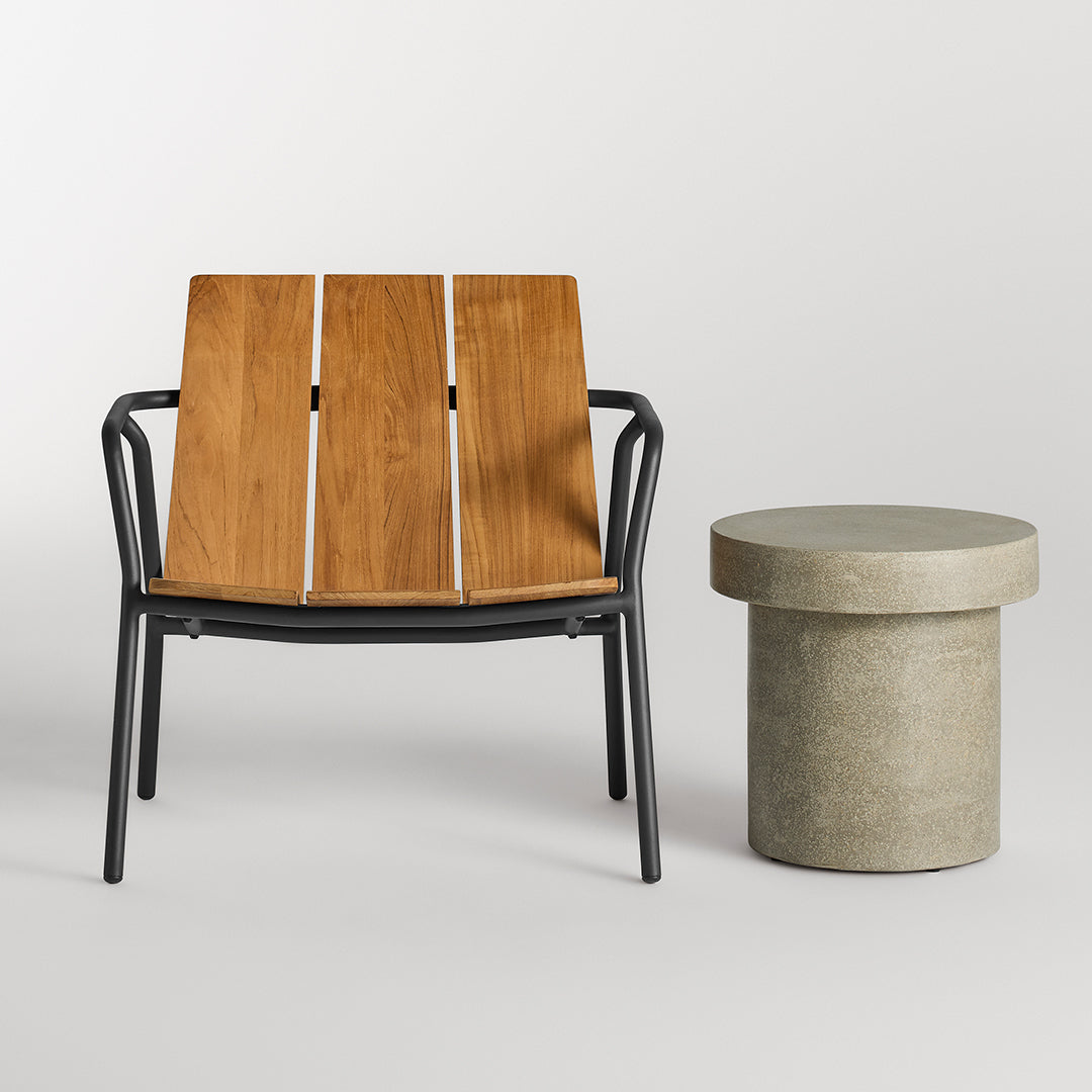 Made from a sausage-like mixture of cement, sand, water and stone, these cylindrical tables lend an elemental sense of earthiness both indoors and out.
