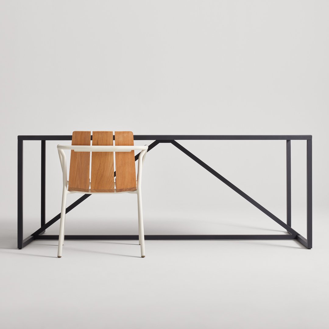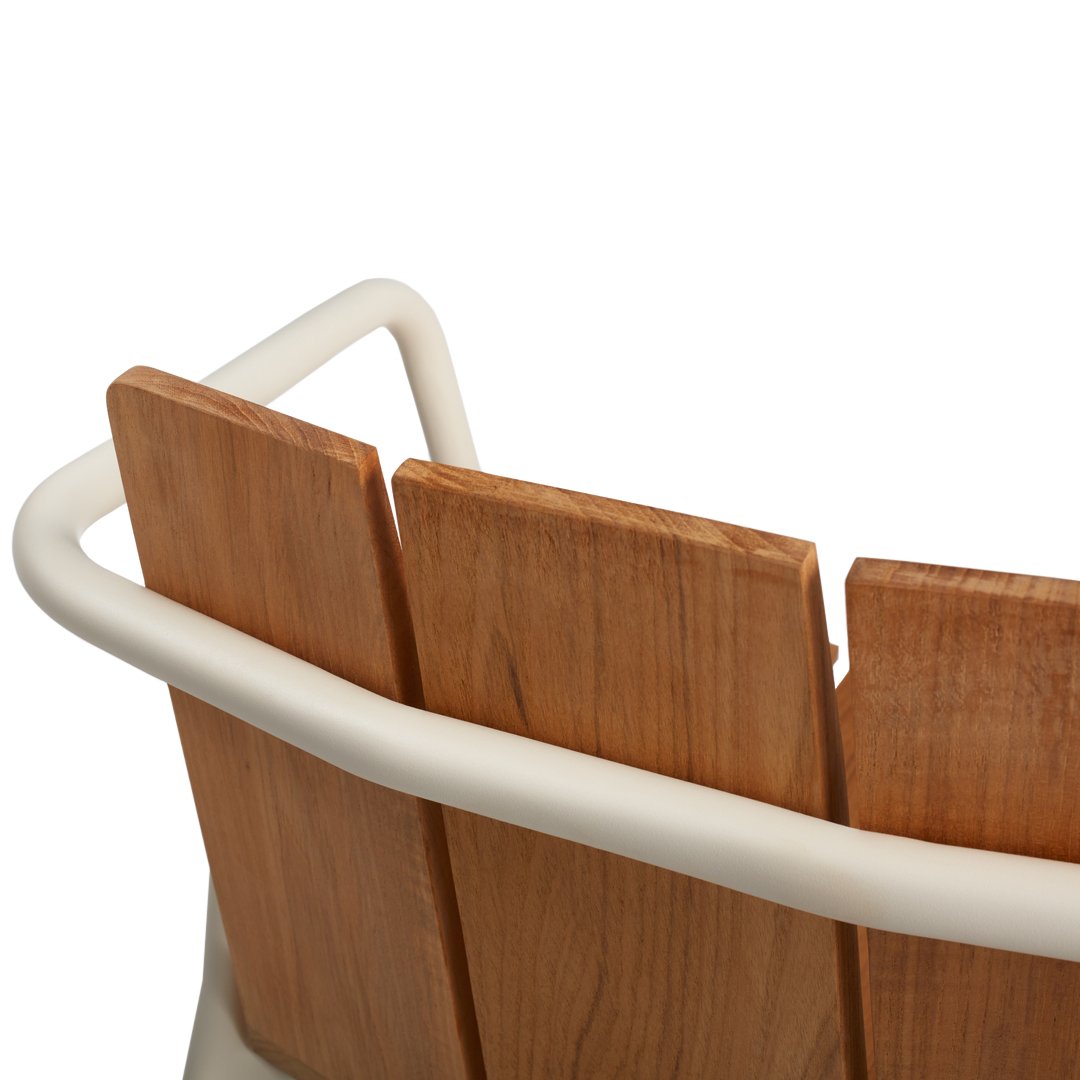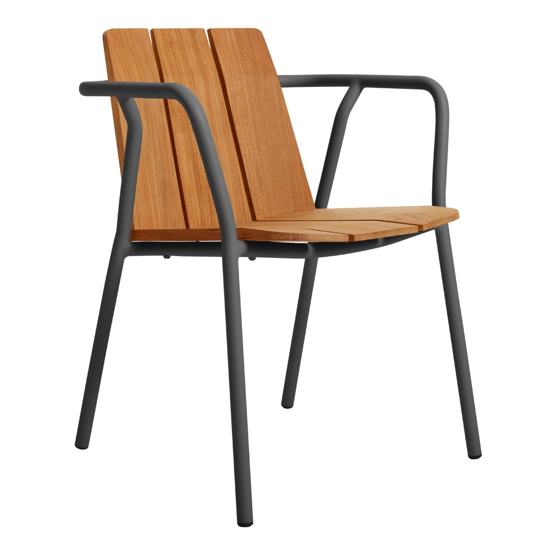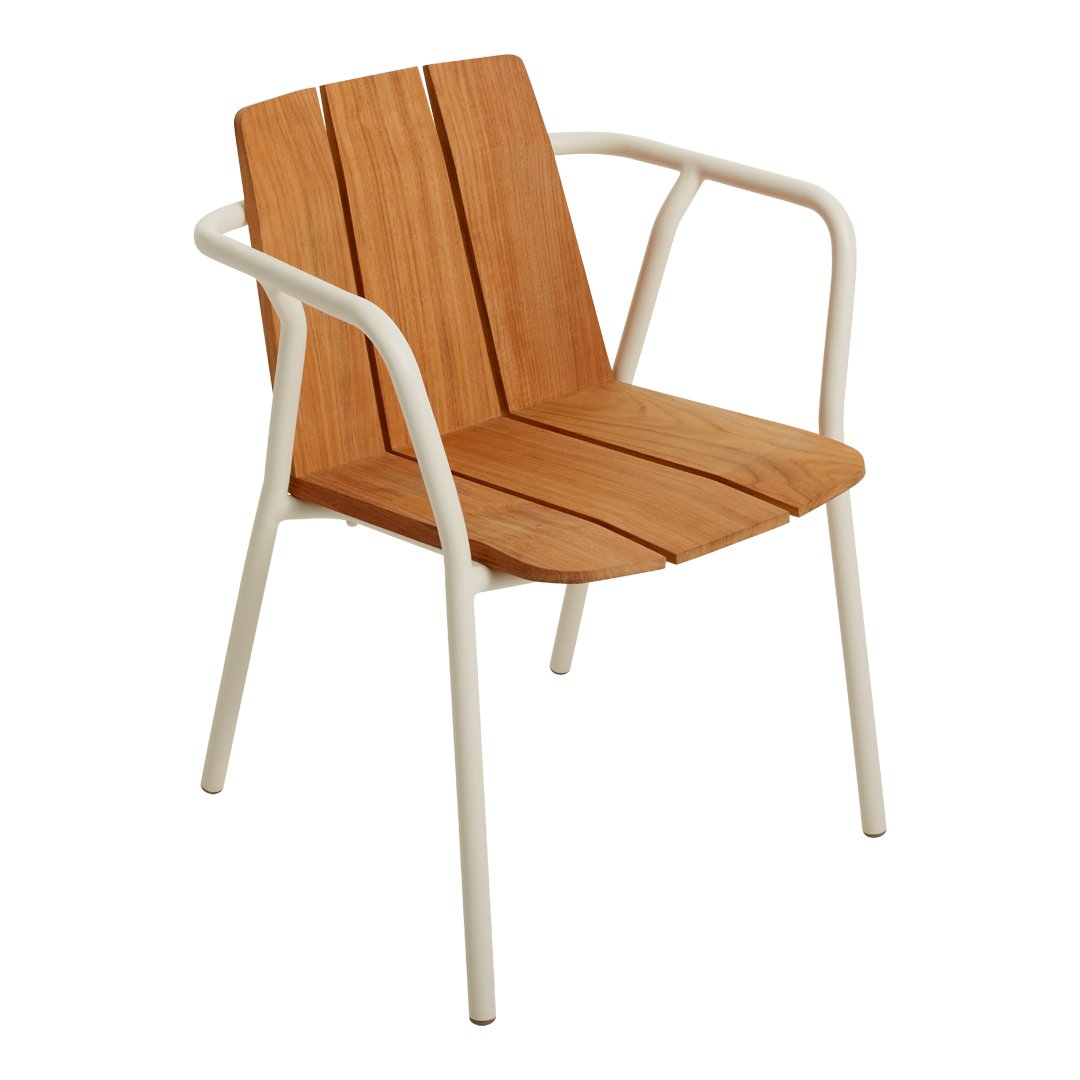 No cookies to disable here. Tapered teak planks and powder-coated aluminum mind-meld to turn heads and appease backsides. Beveled surfaces soften the seat experience. If you're checking your email you're doing it wrong. Stackable and suitable for indoors and out.