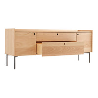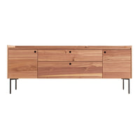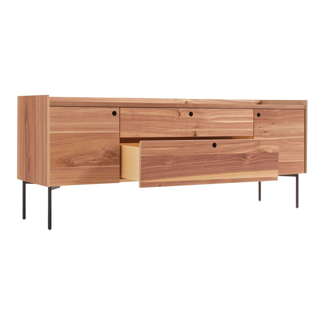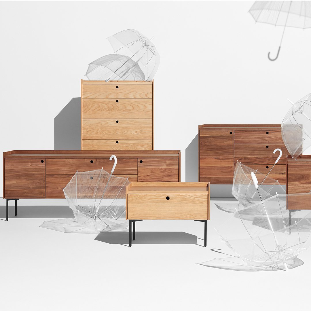 What is missing makes the mojo in this new wood case good collection. A round cut out in drawer and door front acts as the pull, the elimination of material creating function and visual appeal. Designed in a slew of shapes to see to storage needs in the bedroom, living room and dining room.