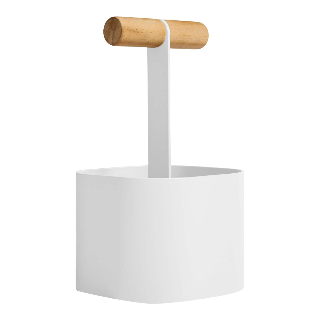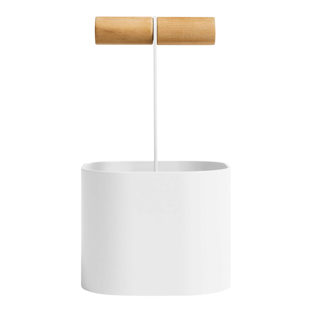 FSC ®-certified teak wood handle adorns powder-coated aluminum to give this intrepid caddy a little flair and a good deal of functionality. Holds condiments, beer, art supplies, more beer. Available in large and small sizes.