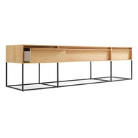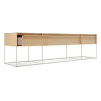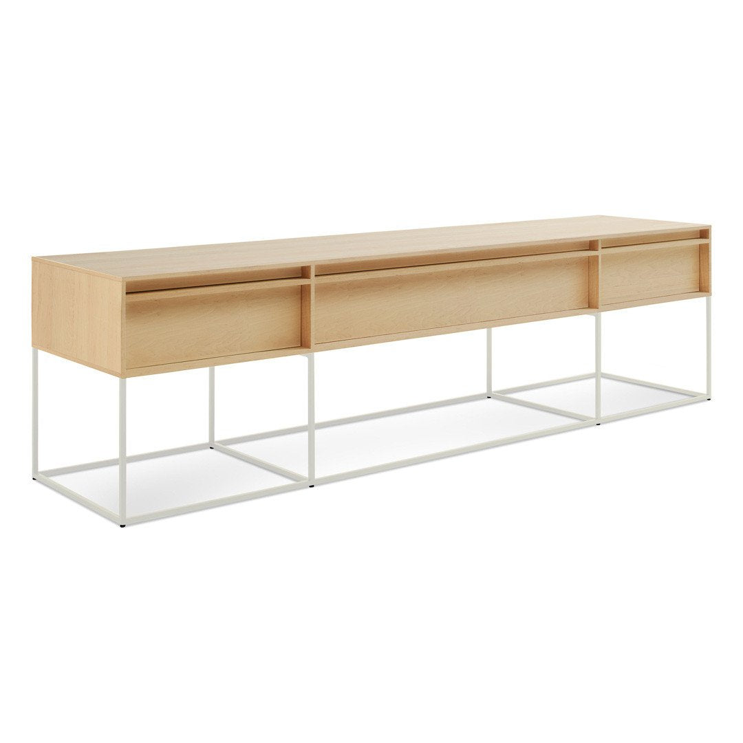 The Rule Collection serves up well considered planes and angles that are ready to slay clutter in any room. Deep set drawer fronts, detailed by a wood pull, reinforce the linear design and create a seductive shadow line. Dusk-colored drawer and door interiors provide a surprise dose of color while a square steel base ties it all together to form an elegantly, uncomplicated form. All with soft close drawers and doors.
