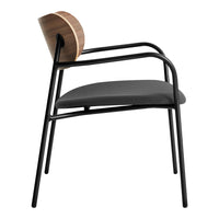 Lounging is more fun when we do it together. SideBySide encourages camaraderie in all spaces. A slim steel frame supports a wide seat and gently rounded back before meandering into two softly sloping arms. An elegant back detail and an endearing mix of materials make this modern take on the traditional school chair a charming addition to any room.