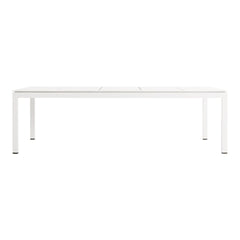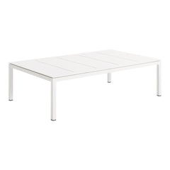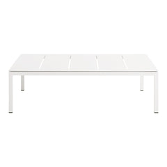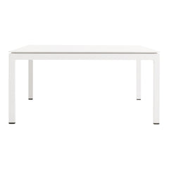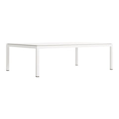 Modern coffee table designed for the outdoors. Crisp minimal powder-coated aluminum. Clean lines designed to weather the elements.