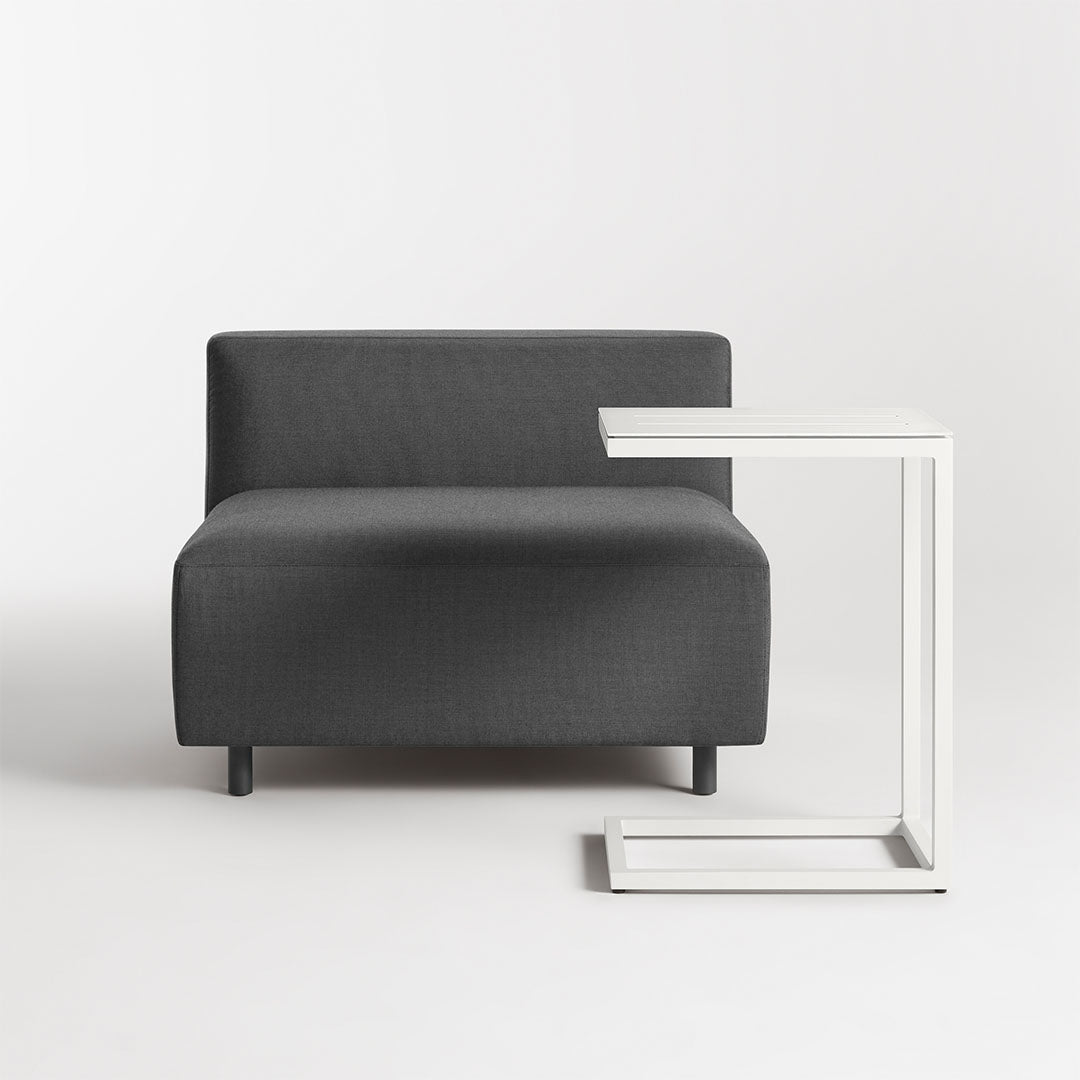 Make your cocktail, sunglasses and steamy beach read come to you. Crisp, cantilevered top lets you keep warm weather accoutrements close at hand. Minimal powder-coated aluminum adds class to the whole laidback situation. Perfect for those who have zero plans to get up anytime in the near future.