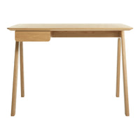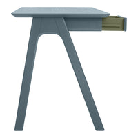 The desk's defining functional element—a discreet pencil drawer—offers practical storage for writing implements and desktop essentials while demonstrating Blu Dot's thoughtful approach to user-centered design. The drawer can be assembled on either the left or right side during setup, accommodating both left-handed and right-handed users with equal consideration—a small but significant detail that enhances everyday usability.