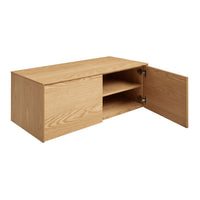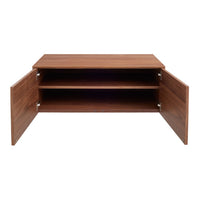 Wall-mounted two door cabinet maximizes functional storage and provides a custom-looking solution without the hassle of finding someone to build it. In walnut with adjustable interior shelf. Pair with companion drawer desk and shelf units to create a full-on storage masterpiece.