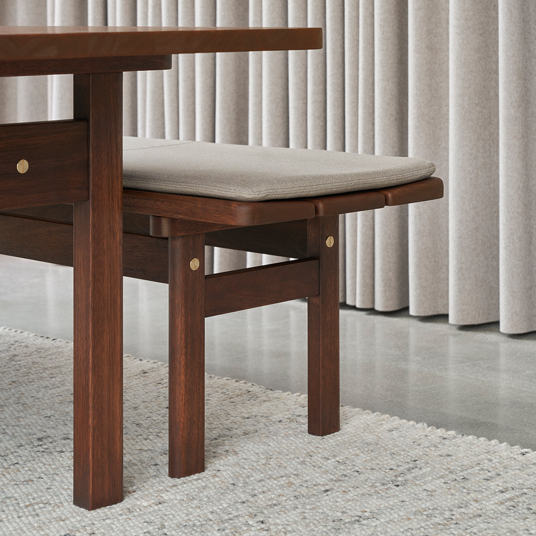 Shaped from solid, dark-oiled FSC-certified eucalyptus, the Asserbo Table exudes a simple stringency that alludes to the Shaker style. Designed in 1961 by Borge Mogensen to meet his own furniture needs, its gently rounded shape is punctuated with brushed brass screws. A piece with high utility value, the table is ideal for private and holiday homes, but also for restaurants and public spaces as a gathering point for meetings, meals and conversations.