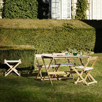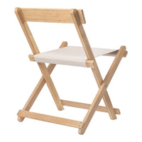 Børge Mogensen conceived the BM45701 Dining Chair in the late 1960s, as a part of his Deck Chair Series of functional outdoor furniture. The chair’s simple, slatted lines and solid teak construction provide durable functionality in a range of outdoor spaces. Fitted with a suspended seat in weather resistant Sunbrella fabric, it folds neatly away when not in use – and can be hung on the corresponding wall mount.