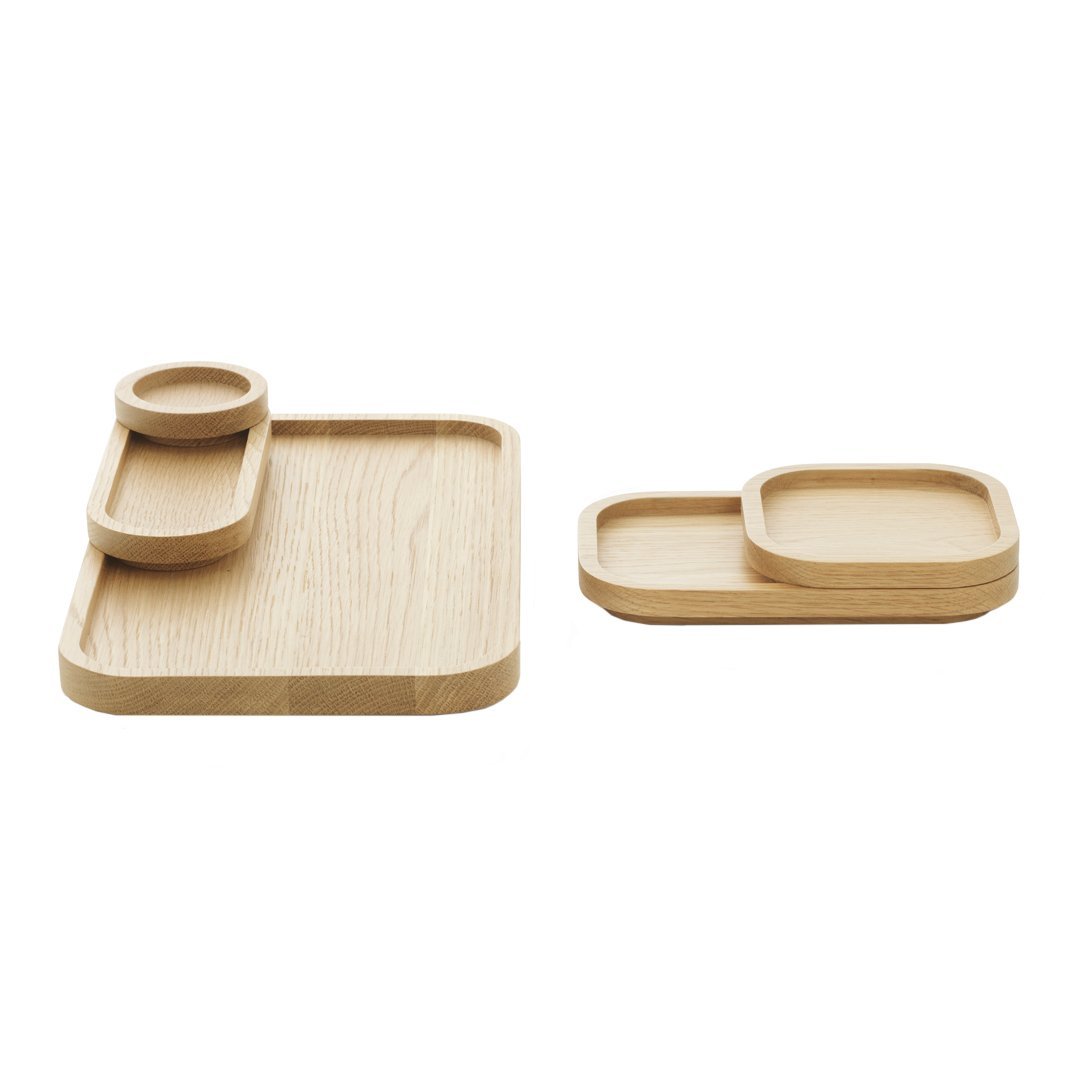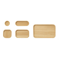 Each tray has its own unique shape, though common to them all is their rounded, organic form and their well-balanced proportions. This gives them a harmonious expression whether the trays are used together or individually. The warm color from the durable oak adds a natural, exclusive look to this practical design.