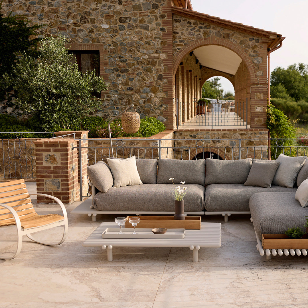 Sticks Platform Sofa is made for the outdoors. Inspired by sticks, the Sticks sofa brings elegance to your outdoor space. Its unique construction replicates the beauty of sticks while providing high comfort and durability. The cushions have the innovative Cane-line QuickDry & Airflow system, which helps to maintain high standards of comfort and good air circulation. In addition, the cushions dry quickly after a downpour. Experience the perfect blend of comfort and beauty. Use it alone or combine it with the rest of the Sticks series.