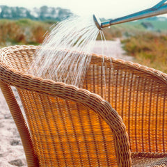 The romantic Derby garden chair is handwoven with maintenance free honey colored cane on a warm galvanized steel frame. This combination of materials makes it possible to leave the garden chair outside all year round - zero maintenance required.