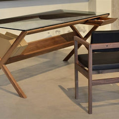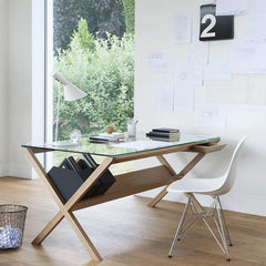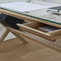The Covet desk, designed by Japanese-born Shin Azumi, is a simple, practical design with a neatly discreet integrated drawer. The solid oak frame, which supports a large glass work surface creating an aesthetically pleasing desk. With its clean lines and strongly defined structure this home office desk is perfect for the home office environment.