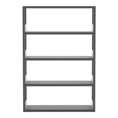 Flexible shelving system, available in three heights with a variety of component configurations. The width can be increased by adding extension units and more metal components.
