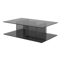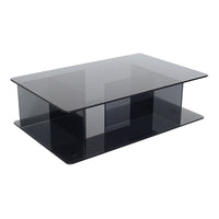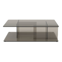 The precise joining of the glass panels at right angles gives this Lucent Coffee Table a smart, unusual and warm effect as the translucent panels overlay darken the shades. One of the strongest design aspects of this table is is the feature of the curved edge top and base panels from tempered glass, which is highly durable and can withstand the demands of family life.