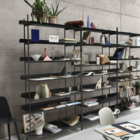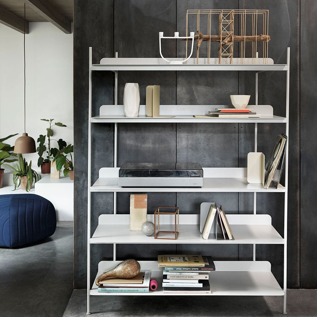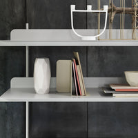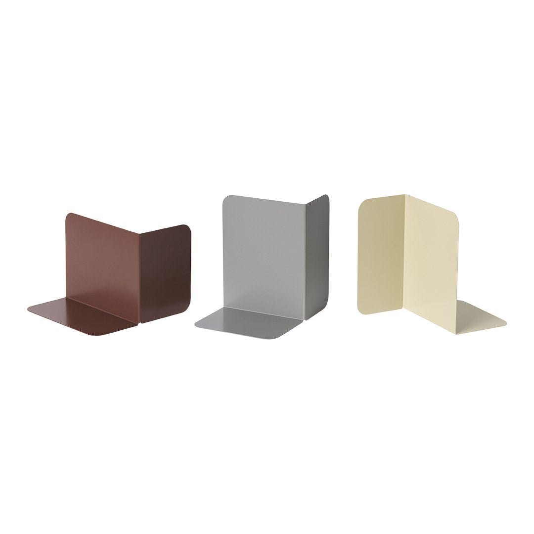 A flexible bookend that can be placed in different ways to support various sized books. The bookends serve as a sculpturally decorative element, adding color and personality to a shelving system. The design and function of these bookends allows it to be suitable for many environments, be it in a living space, office, or reception.