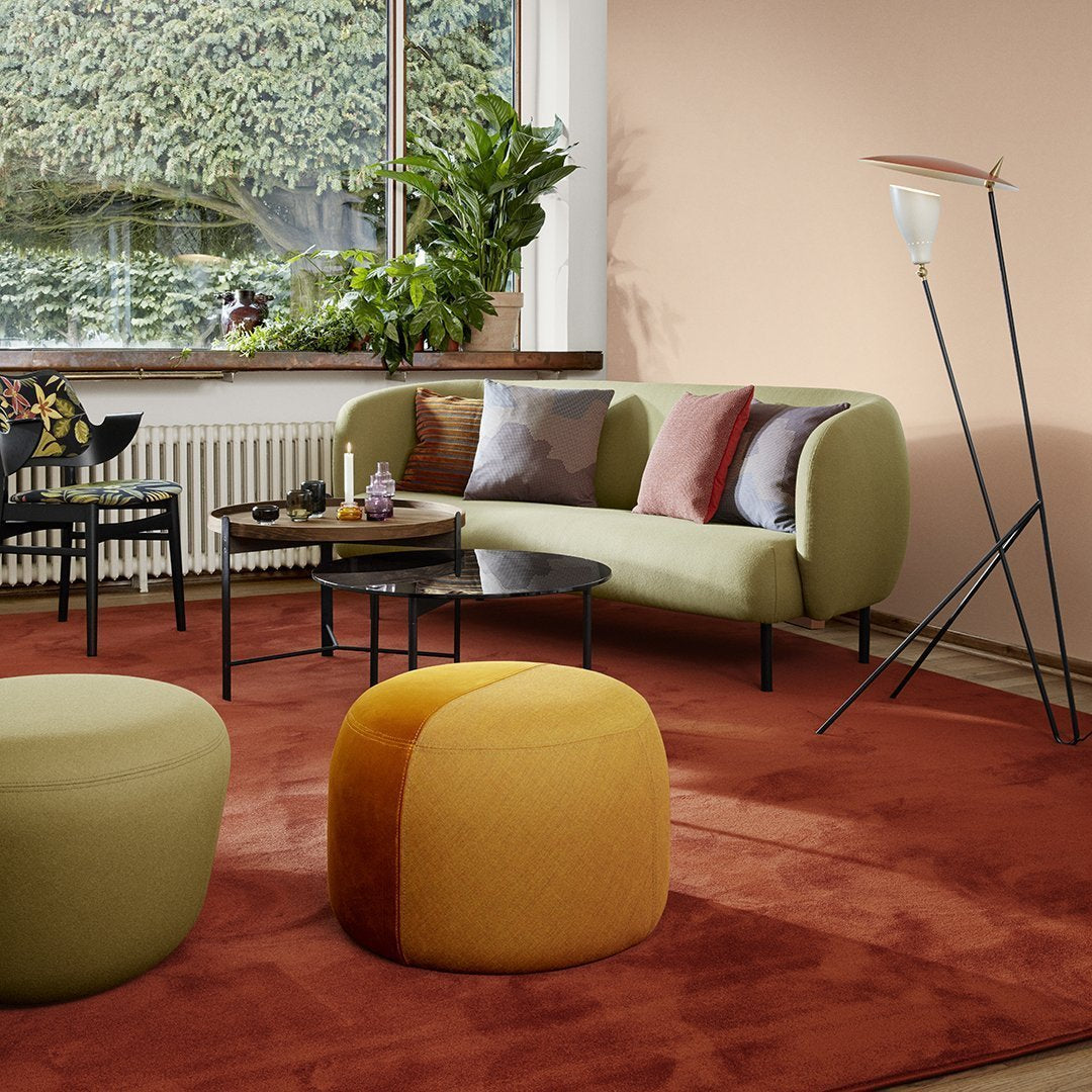 An elegant sofa with an organic design inspired by the puffed sleeves and layered designs of haute couture. Its soft lines and chic details make the Cape sofa a natural focal point, preferably in the company of the armchair in the same range. Both items of furniture are available with or without visible stitching. The sofa looks just as elegant in a modern building as in an old-fashioned luxury flat and has a light look by virtue of its slender metal legs. To achieve aesthetic perfection the Cape range is covered with exclusive furnishing fabrics, including ‘Hero’, whose soft, almost felt-like surface complements the sofas organic shape, and which is designed by Patricia Urquiola. Choose from several different, high quality furnishing fabrics from Kvadrat in soft, Warm Nordic colours.
