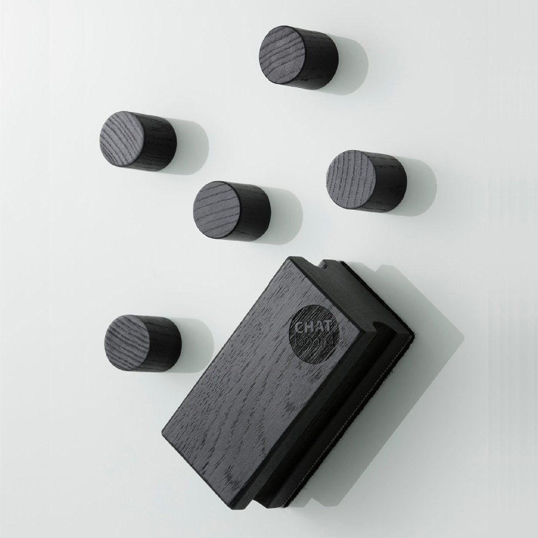 The CHAT BOARD® magnets are extra strong and specially developed to adhere through glass, while still being able to hold up to 15 sheets of A4 paper.