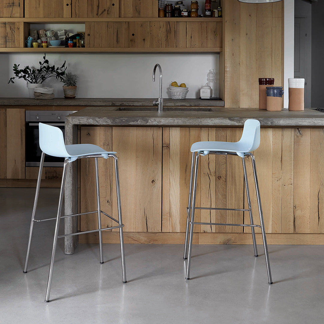 The barstool of the Vesper series is also be available with frame in tubular steel. This version provides additional choice for the VESPER 3 model, gaining an even more stable and solid appearance nevertheless maintaining its fresh and modern aspect.