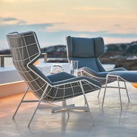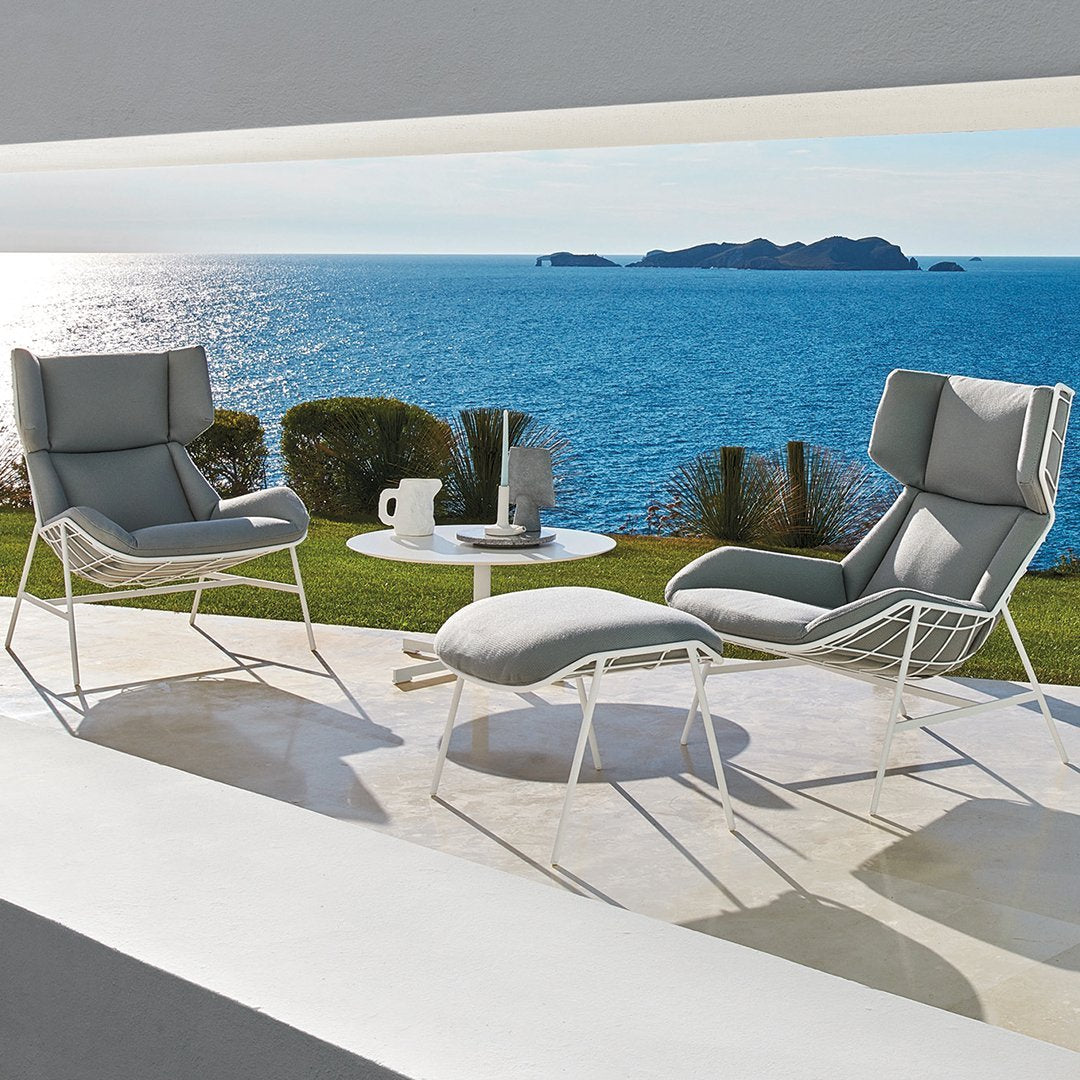 The Summer Set Footrest stands out due to its essential and future-oriented design, emphasized by a net structure, an interweaving of metal wires that can be customized in different colors.