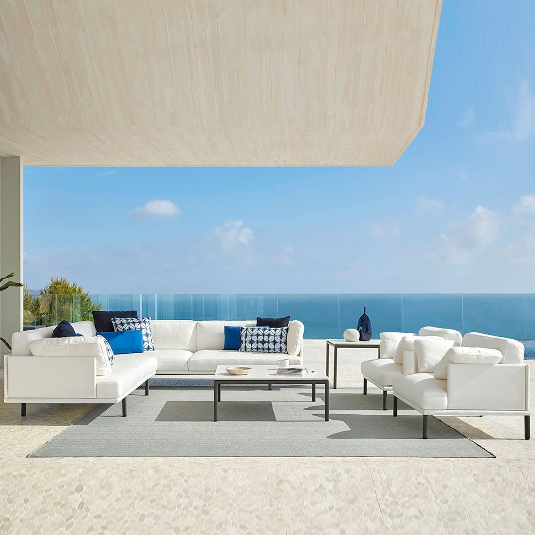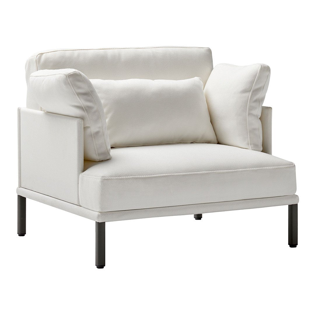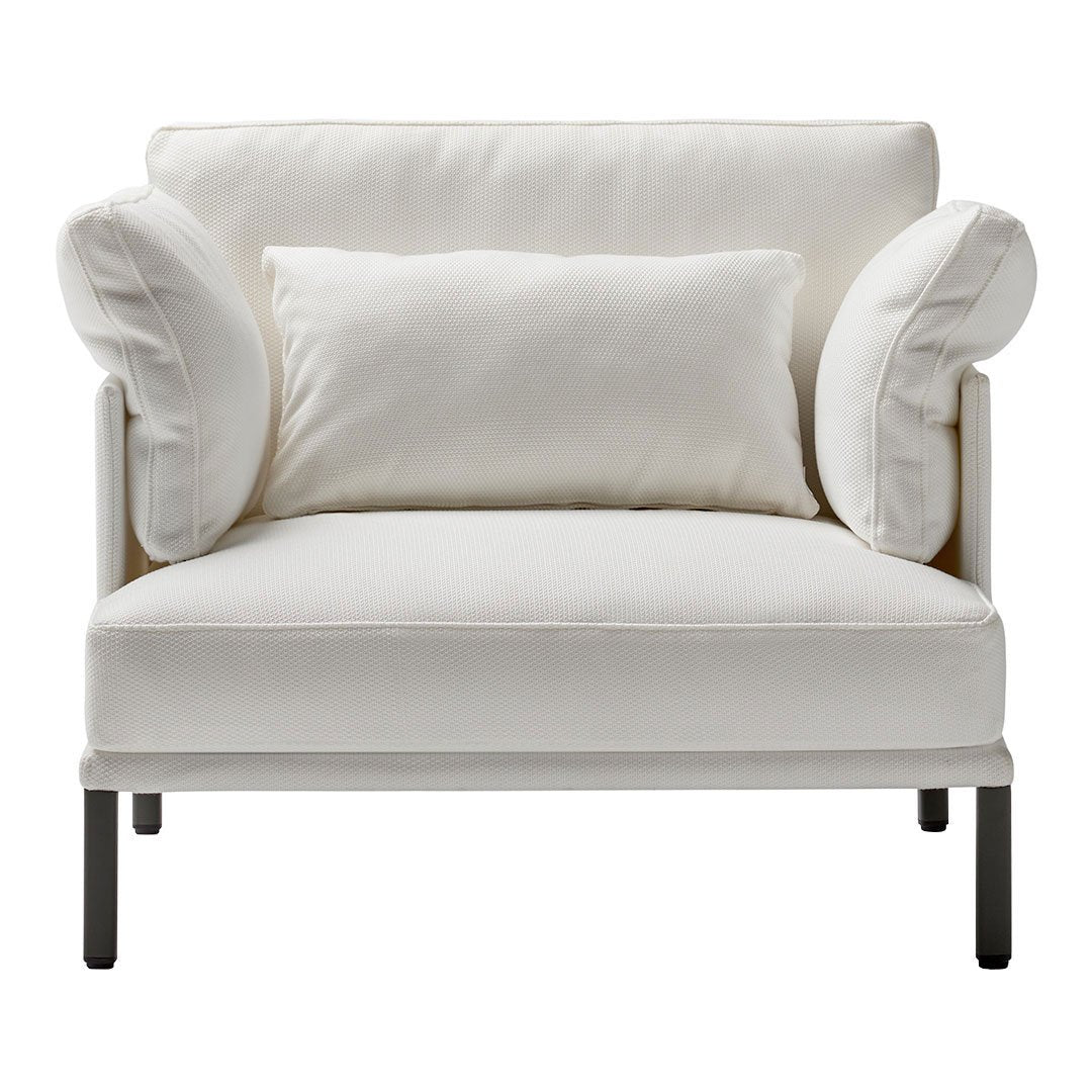 Armchair with powder-coated Aluminum frame and adjustable legs. Aluminum finish in one color: Metallic grey 56. Seat and back cushion in high resistance 35 kg polyurethane foam. The seat cushions include the GOODSIDE slatted suspension method, which is combined with foam to make the seat highly resistant and comfortable. The cushions with this system always include a waterproof cover.