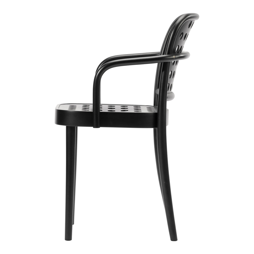 This seating collection was created in partnership with the Swedish studio Claesson Koivisto Rune. It takes inspiration from Josef Hoffmann’s 1930 design of the modernist model A811, with the Swedish creators extending the design in the direction of contemporary Scandinavian minimalism. They have created a distinct version whose proportions work better with the natural forms created by manual wood-bending technology, and which gains a unique character from the graphic dot perforations in the plywood seat and backrest. These design principles have been applied to a chair, an armchair, a lounge armchair, a bar stool and a low stool.