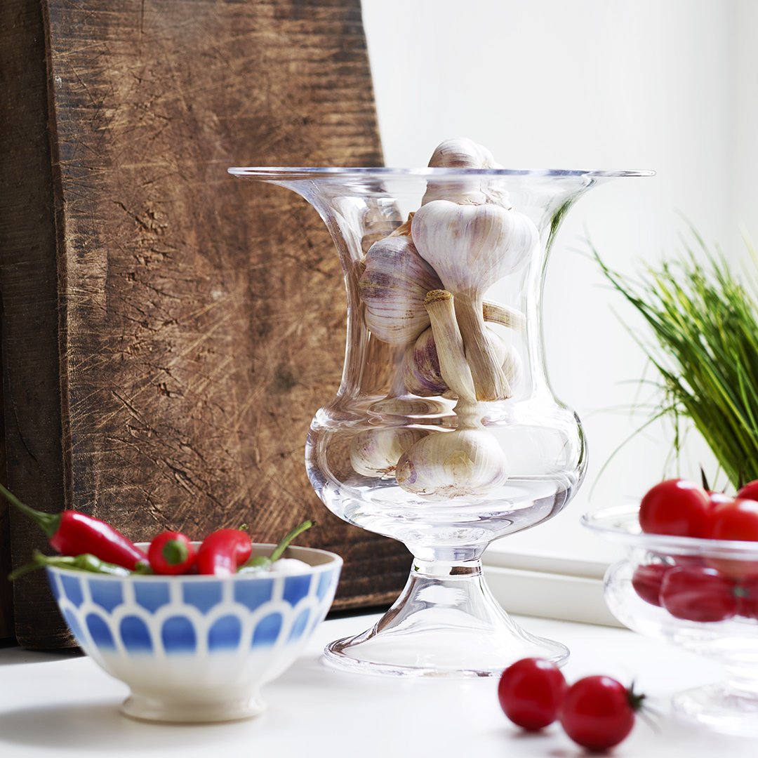 There is a thriving interest in interior fashion and furnishings, and attractive floral arrangements are a burgeoning trend The Old English vase by Holmegaard has been designed in collaboration with floral artist Claus Dalby Based on the English garden tradition of sumptuous flower beds, the Old English vase has been created to provide flowers with the ideal setting and allow them to sit naturally The narrow neck and spacious bowl of the vase are suitable for both tightly bound and loose flowers The Old English flower vase is made of transparent glass. An ideal gift idea for anyone who appreciates the energy created by living flowers.