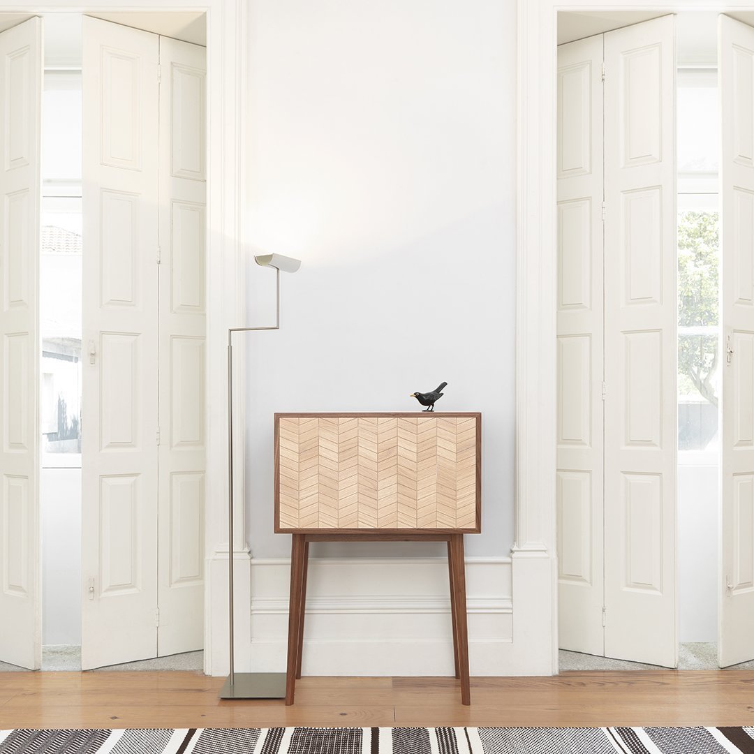 The interior can be completely rearranged according to different needs, allowing it to be used as a bar, a desk or simply as a sideboard.