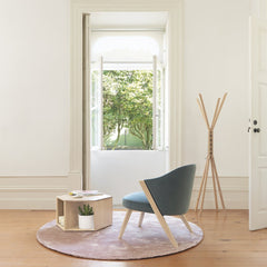 Made in solid wood and with its top in hexagonal shape, Hexa can be placed in horizontal and vertical positions, working as a simple coffee table but also as a side or bedside table.